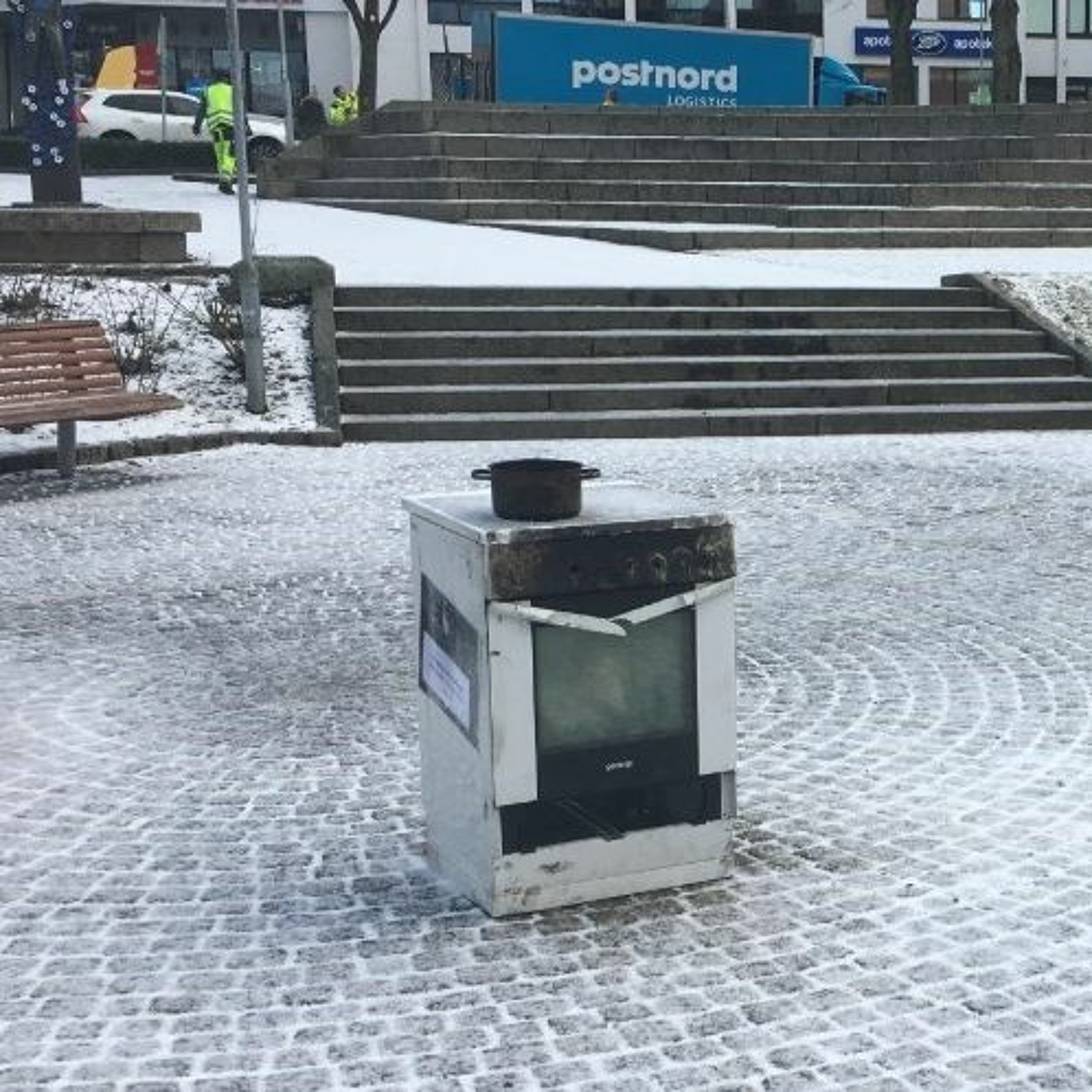 I Steinparken i Haugesund står en utbrent komfyr til skrekk og advarsel. Den er utplassert til skrekk og advarsel i forbindelse med en kampanje for å få folk til å installere komfyrvakt.