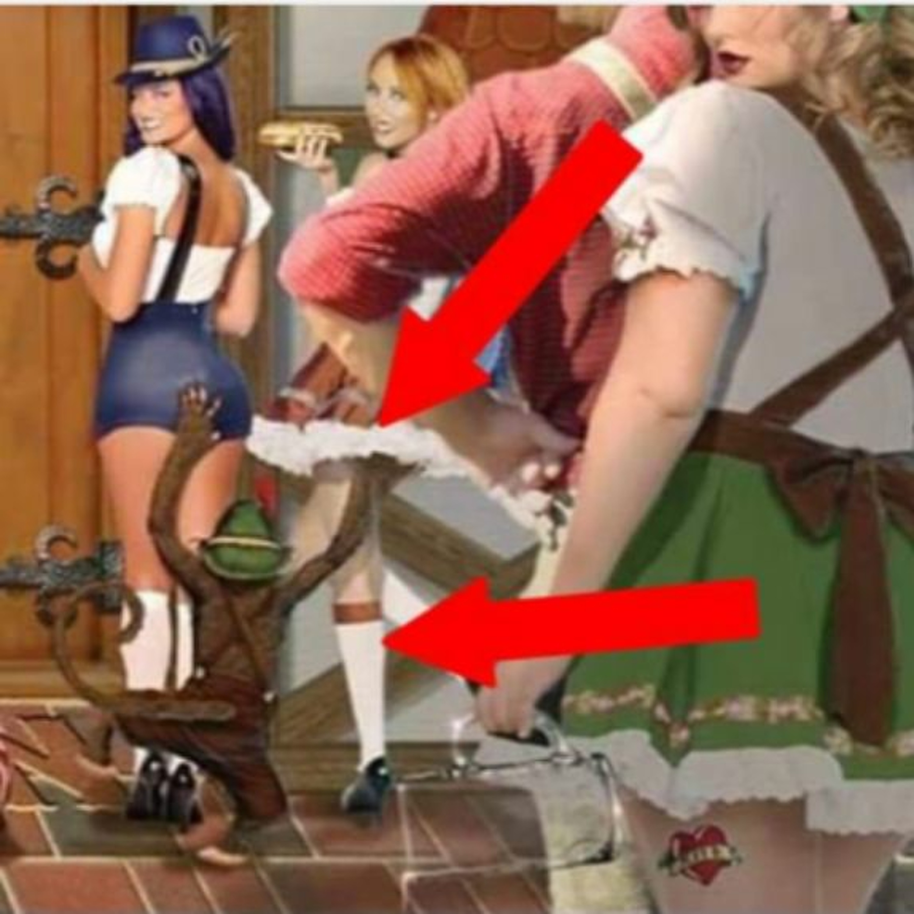 A monkey grabs tail and beatles pricing.