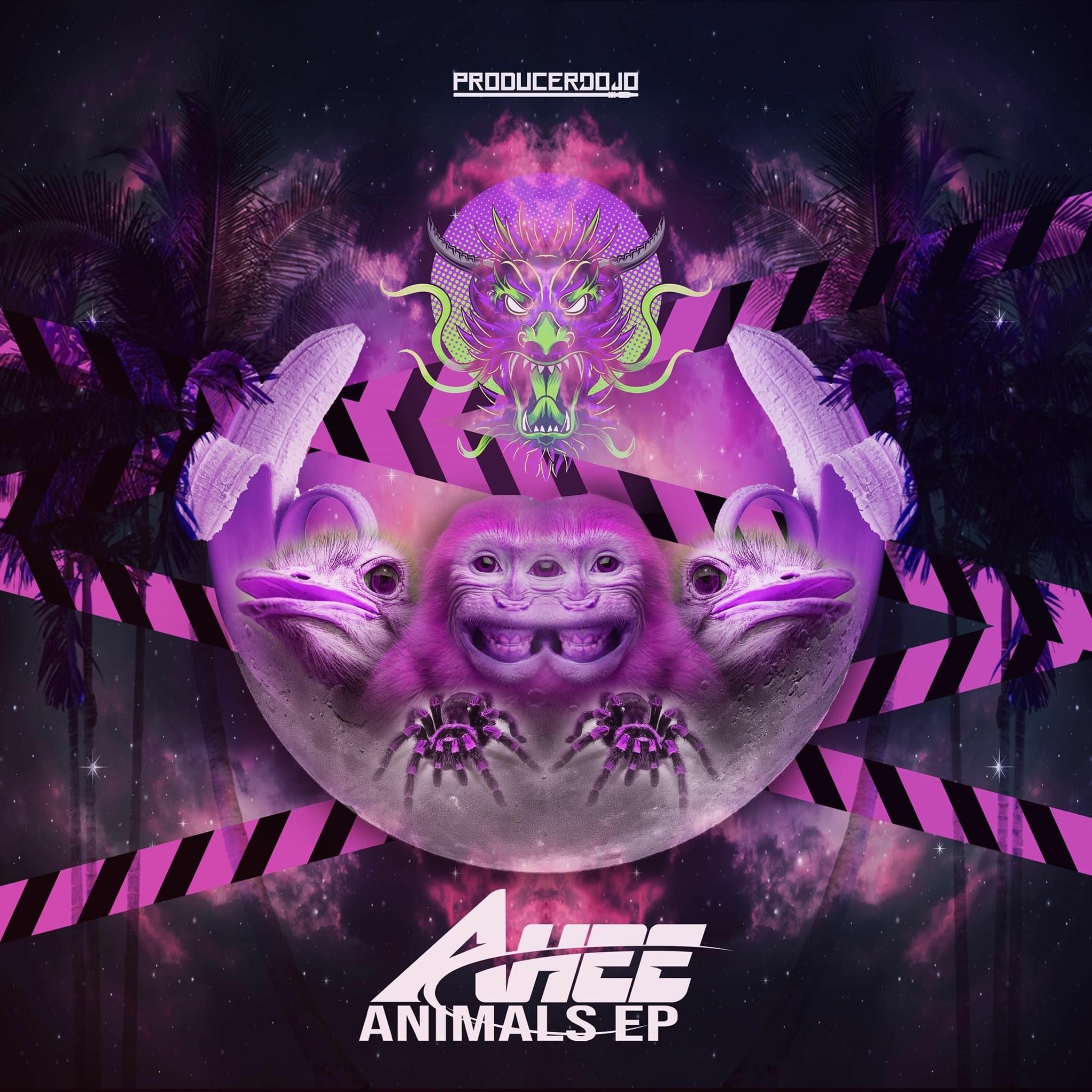AHEE is back with a fresh take on Glitch Hop with his Animals EP on iLL.Gates’ Producer Dojo label. These 4 new tracks range from heavy neuro bass inspired dance floor bangers like “10 Foot Tarantula” & “Jungle Dragon Beat” to 7 minute Clozee-esqe melodic journeys like “Night Monkey.” A wild mixture of wiggly bass lines and psychedelic soundscapes will be sure to entertain your body, mind, & spirit.