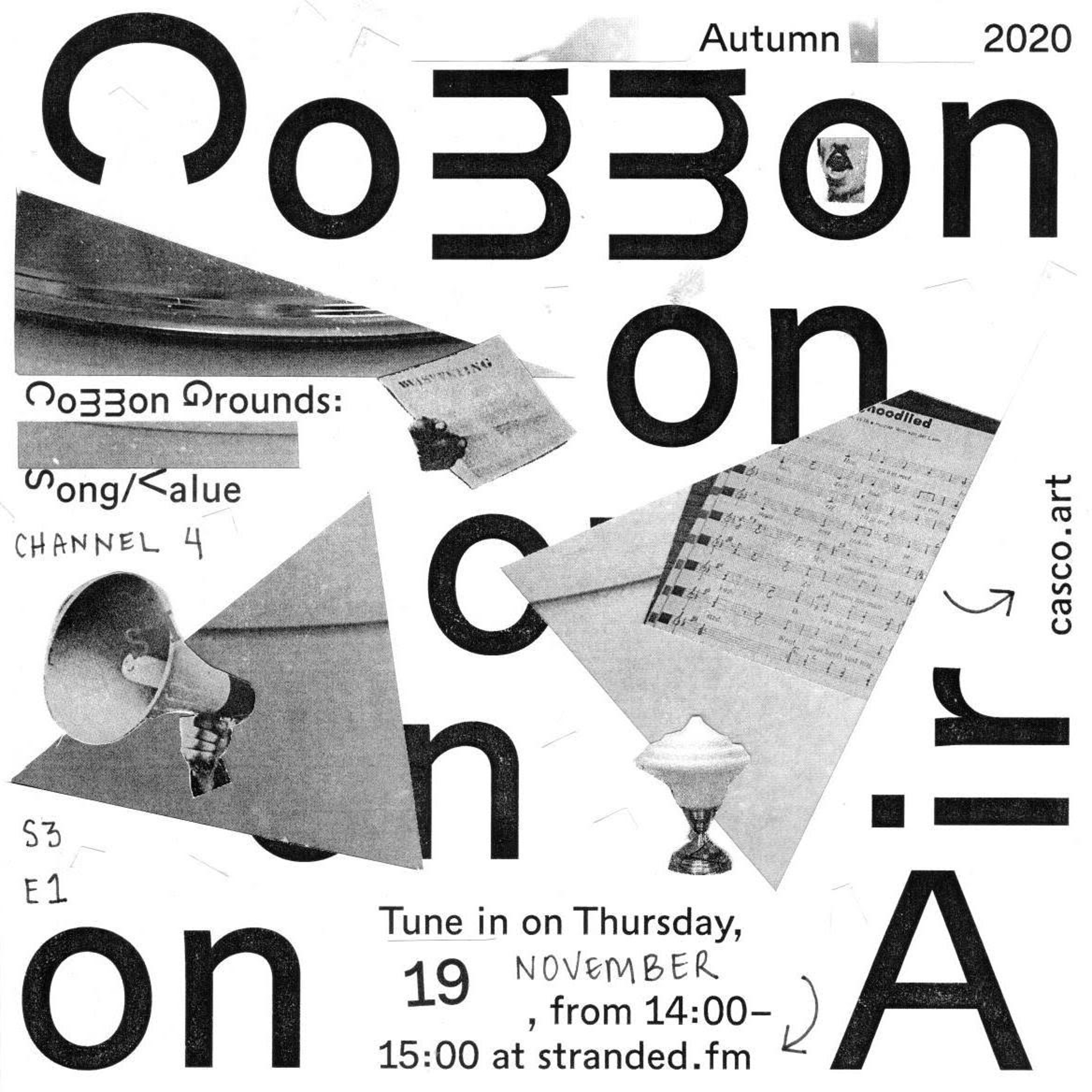 Welcome to our new season of Common Air, Casco’s radio broadcast streamed on Stranded FM, now Channel 4 of our autumn program Common Grounds: Song / Value.
