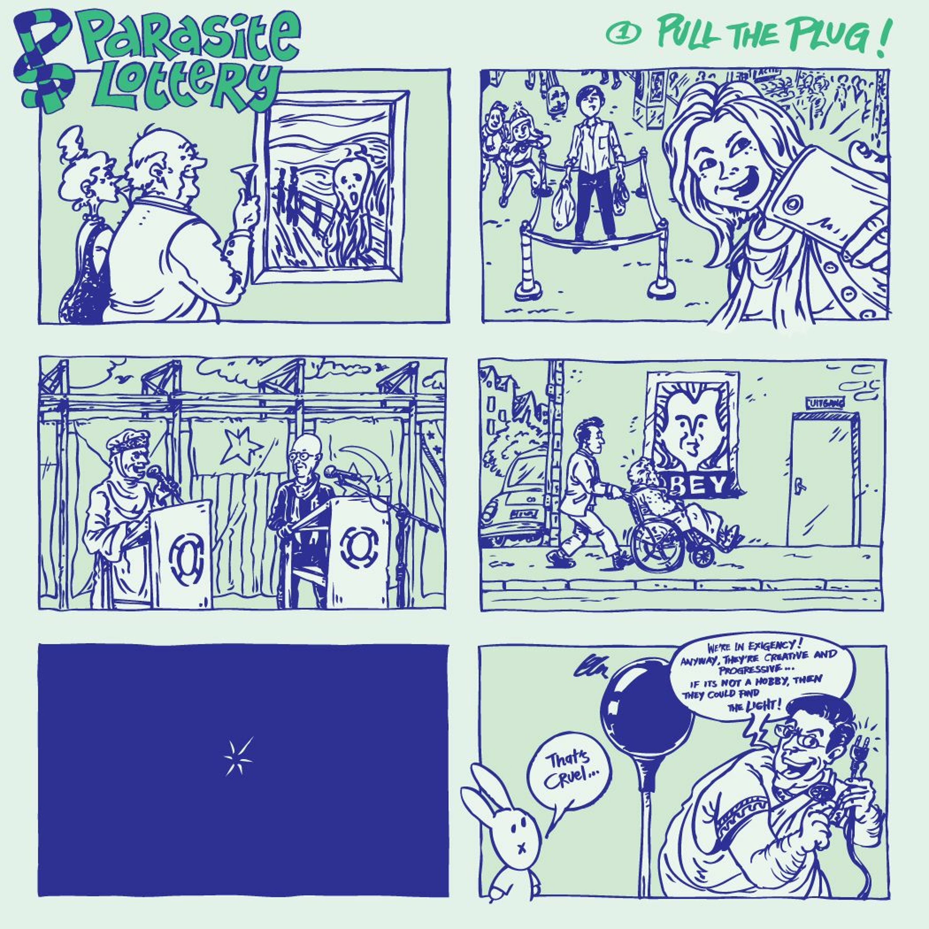 This song is part of Parasite Lottery, a pilot version of a collective lottery system for art organizations in the Netherlands and their communities proposed by Wok The Rock and Casco. Download the song and comic on www.parasitelottery.com.