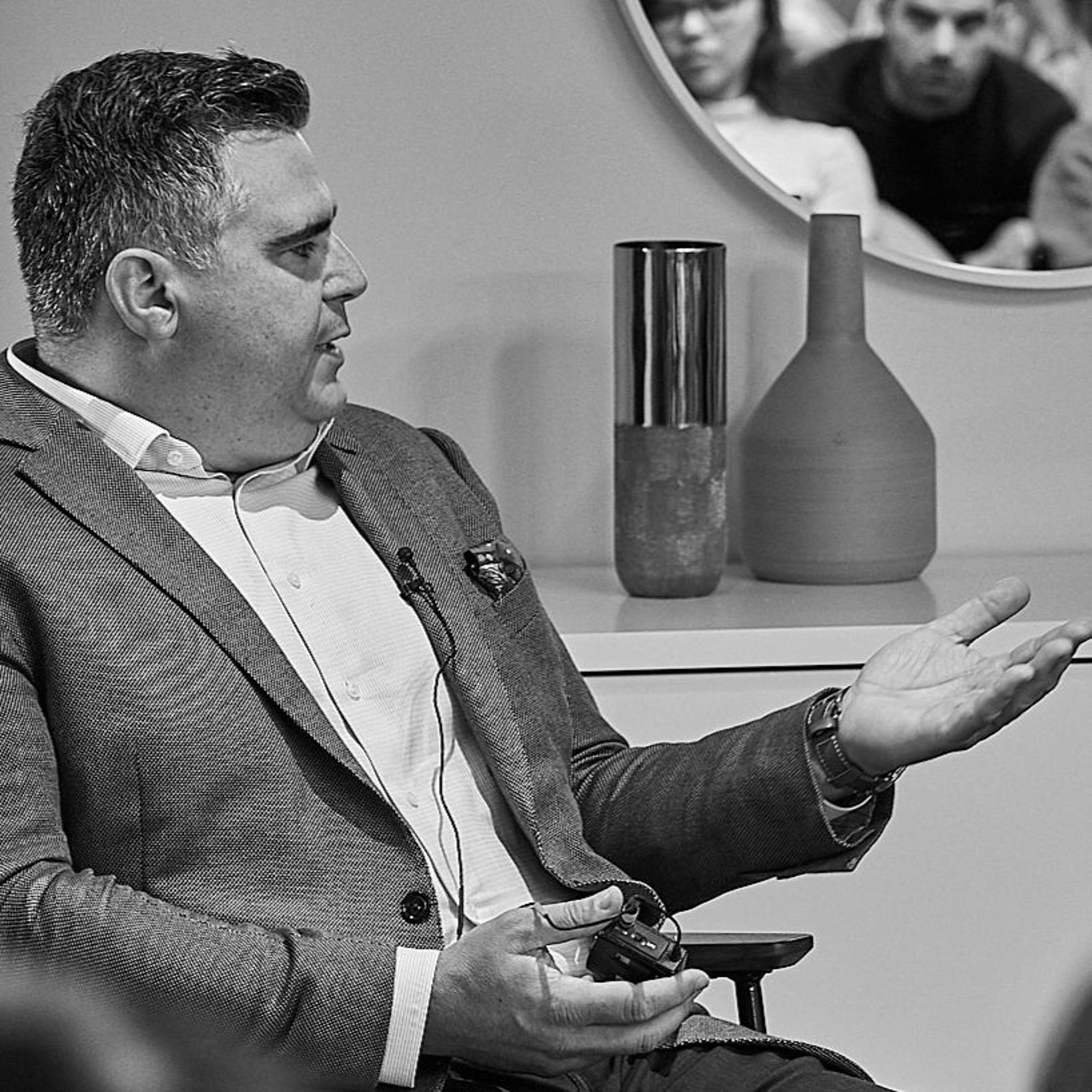 Le visionnaire et CEO du Groupe ALDO David Bensadoun partage les hauts et bas de son cheminement en compagnie de Geneviève Sharp, animatrice, et des invités alcove.