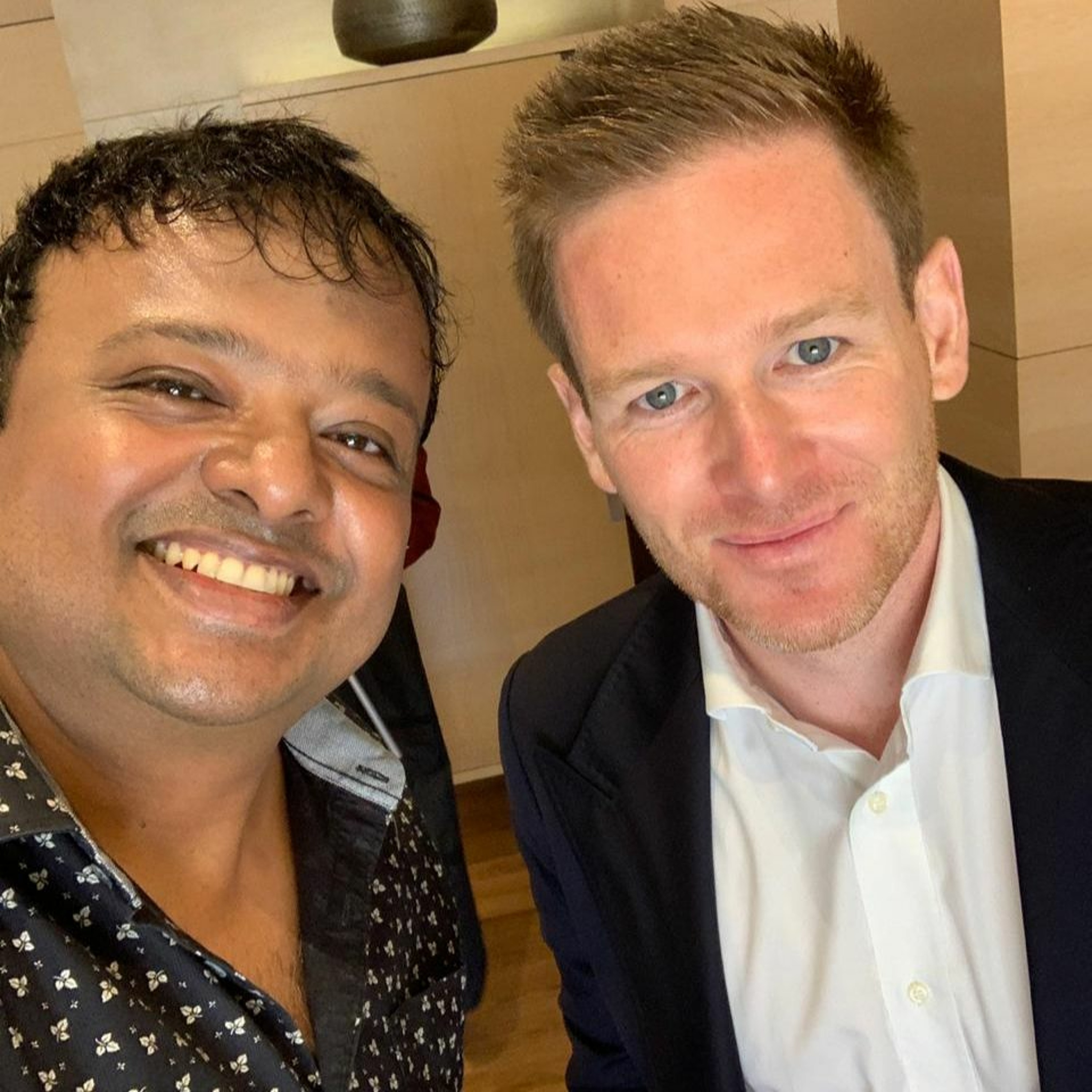 Hrishi K with Eoin Morgan - England Cricket Captain