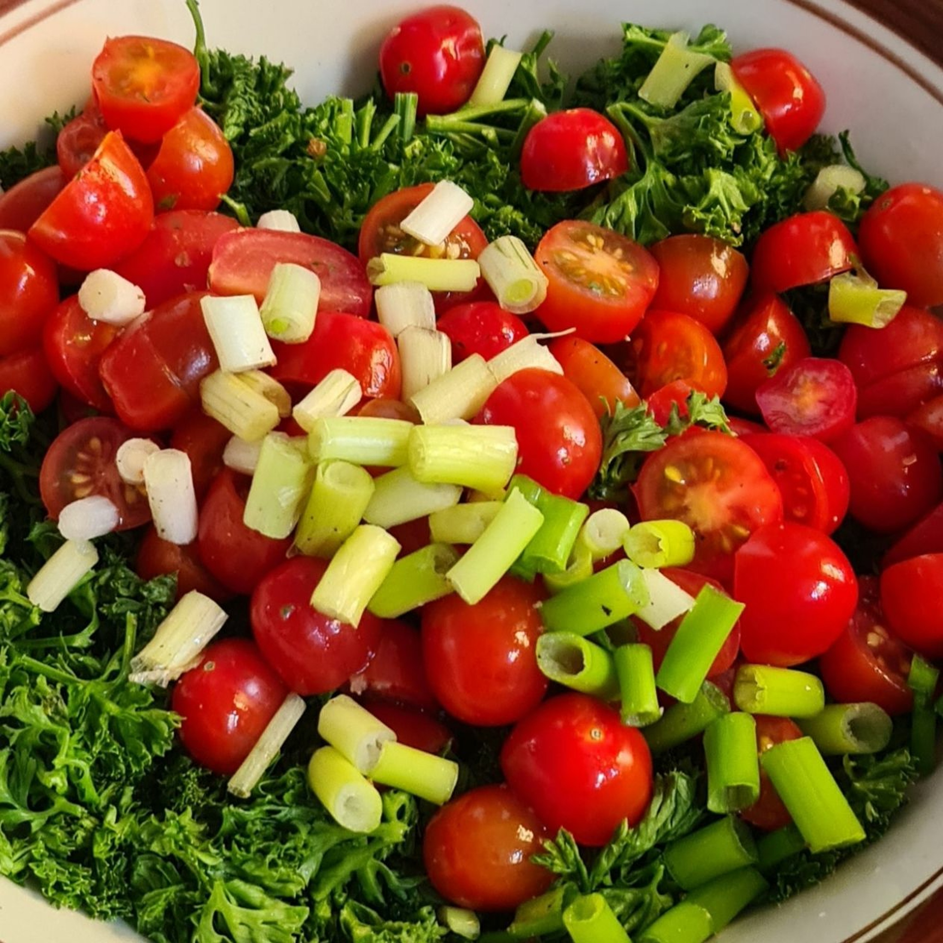Cheery tomatoes remain in season well outside commercial varieties, they self-seed are fruit fly resistant and hardy. Using seasonal alternatives and rescue food, Geoff makes a low-carb, zero-cost tabbouleh.