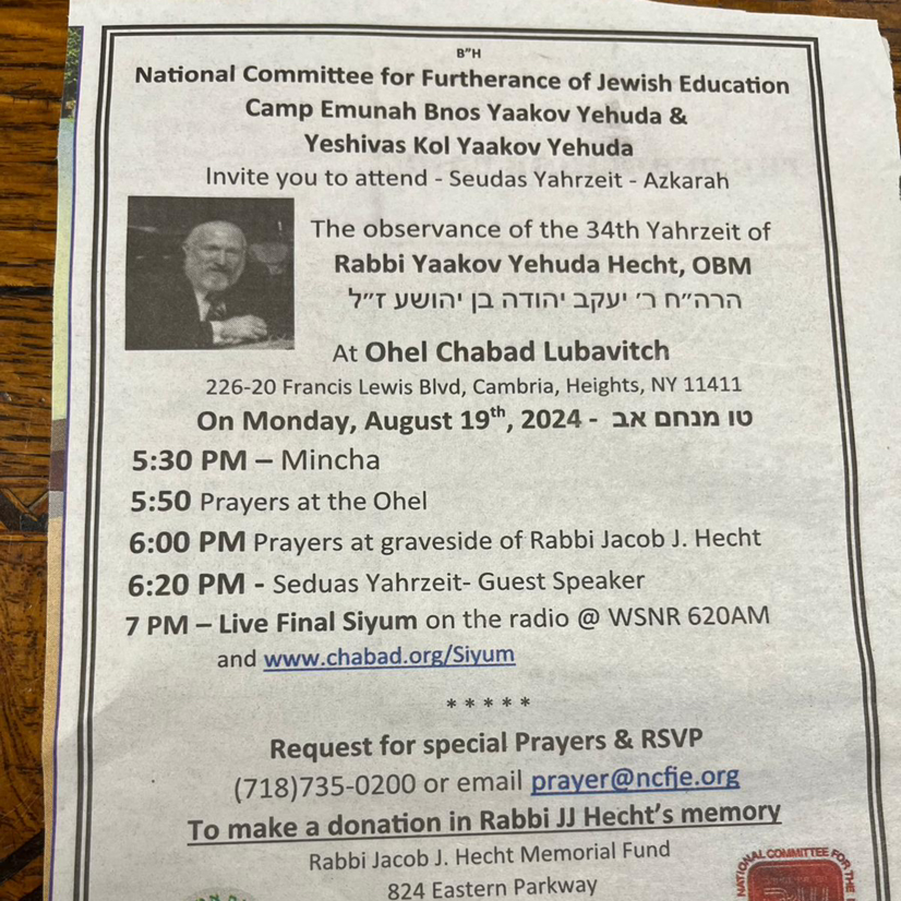 Zaydie Hechts 34th: MZ Hecht: Keser Yitnu Licha