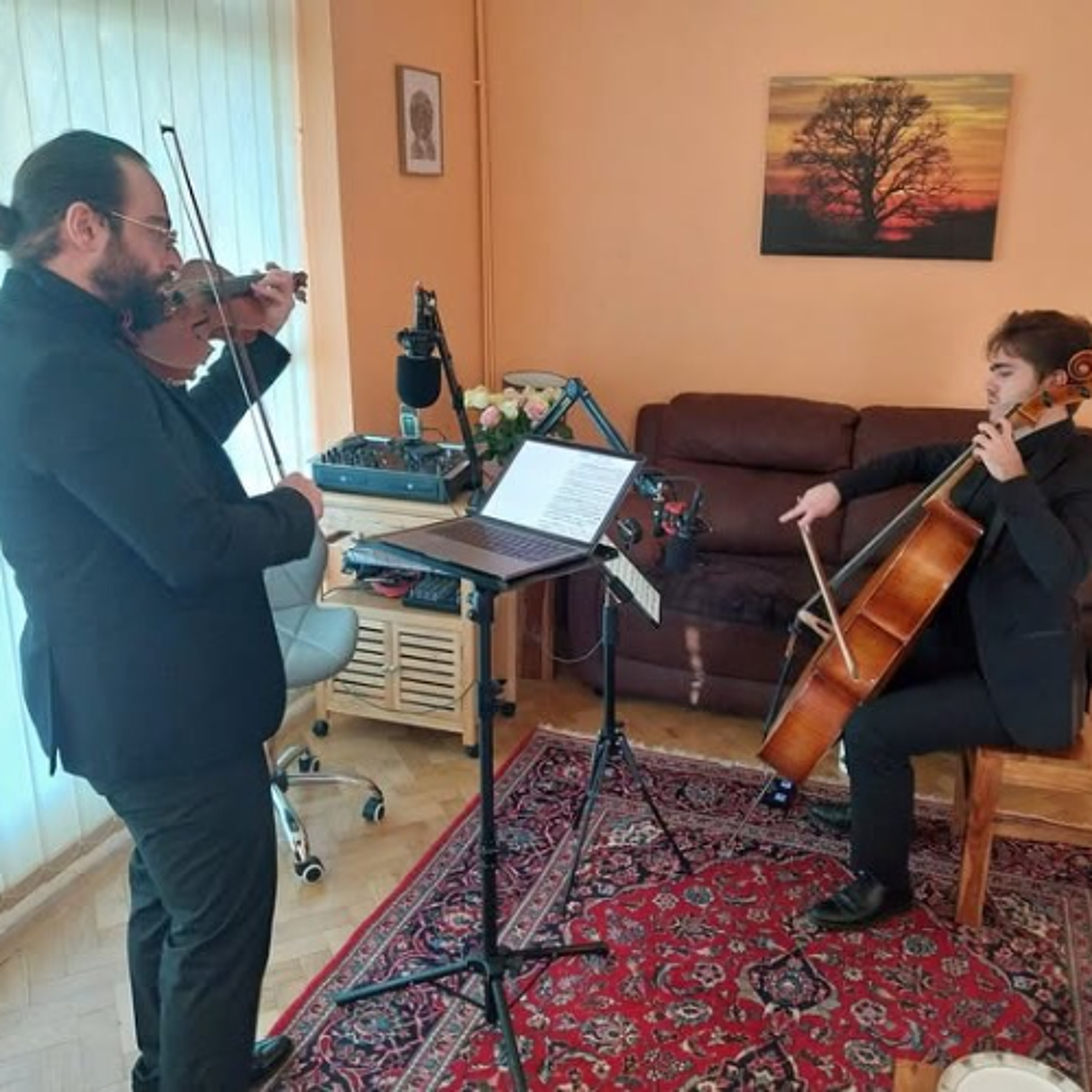Raffaele Pagano violinist and Goncalo Pires cellist (pictured) play the following 3 pieces in the studio