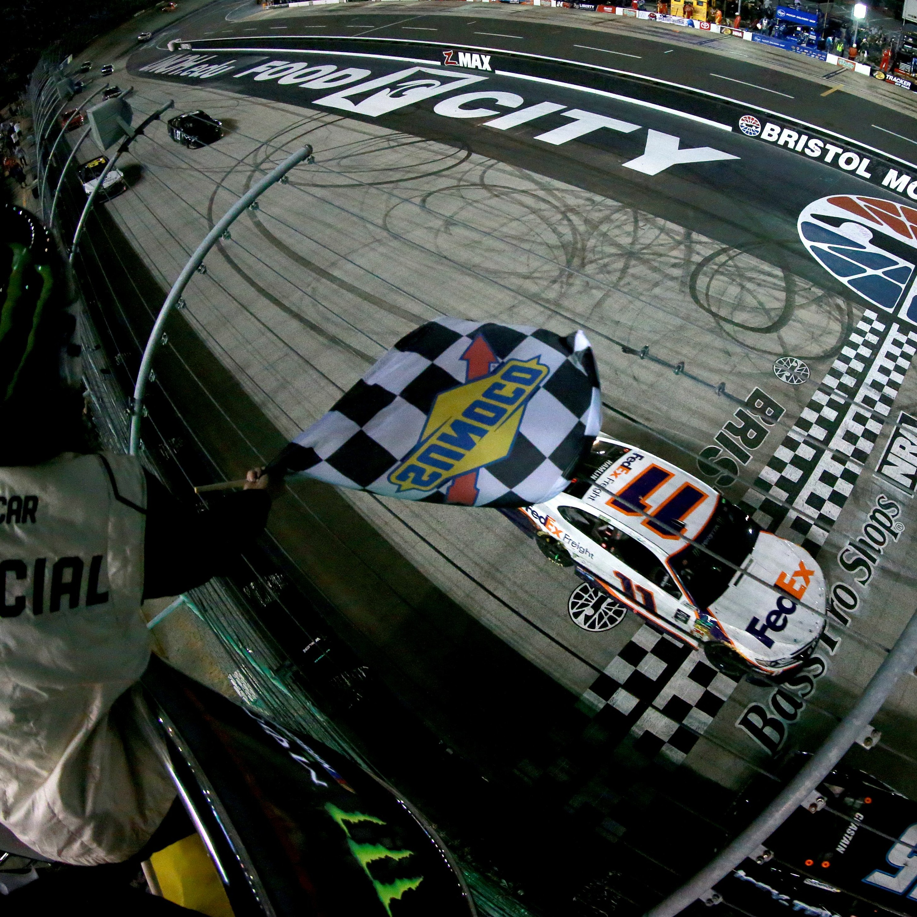 Denny Hamlin wins the Bass Pro Shops Bristol Night Race. Post Race Conference with Race Winner Denny Hamlin, Crew Chief Chris Gabehart, and Team Owner Coach Joe Gibbs.