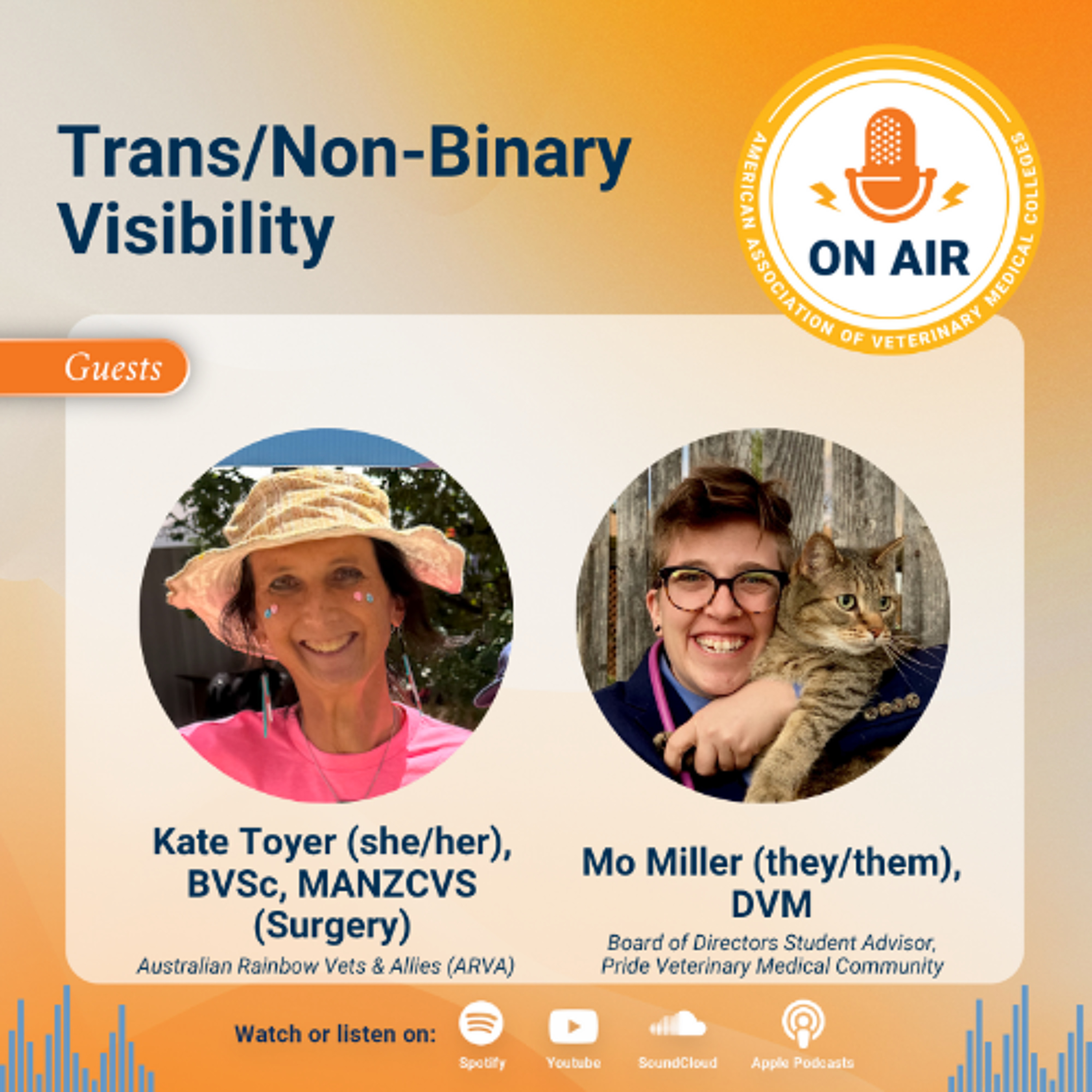 On today's episode we sit down with Kate Toyer (she/her) of Australian Rainbow Vets & Allies, and Mo Miller (they/them) from Pride Veterinary Medical Community, to get a first hand perspective on what their experiences as non-binary and trans individuals in the veterinary medical community has been like. Our guests speak on what holding these identities mean for them, the struggles and challenges they've faced, and share their views on what we all can do to become better allies and advocates for their communities.