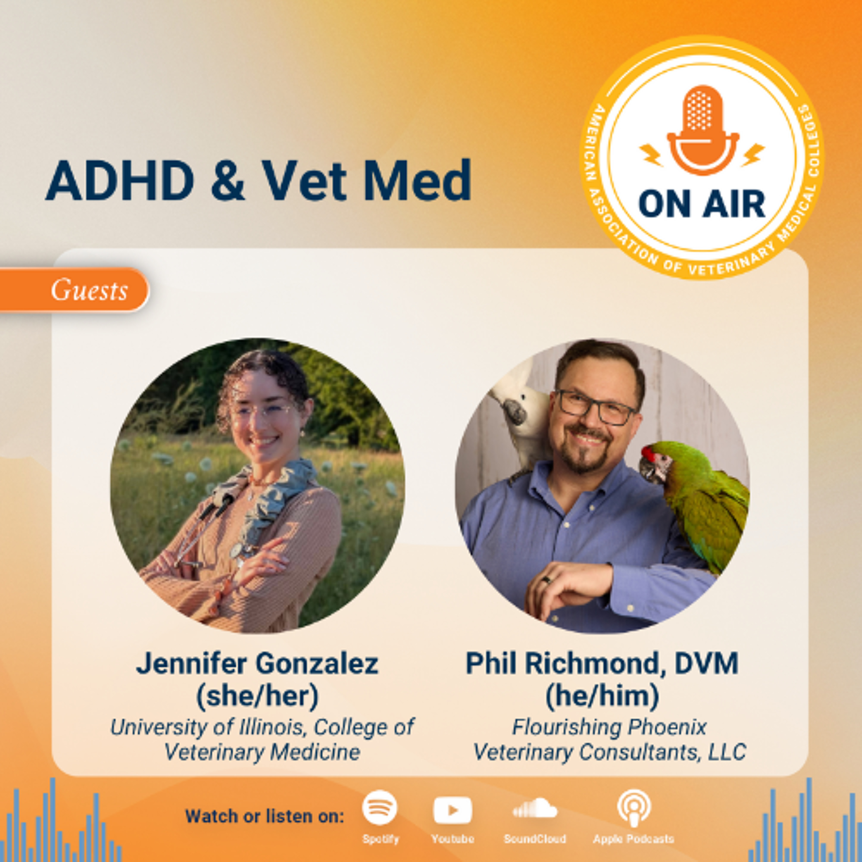On this episode of AAVMC's On Air, Dr. Greenhill sits down with DVM student Jennifer Gonzalez and Dr. Phil Richmond to discuss how having ADHD has affected their veterinary journey and the ways in which they have figured out how to work with their neurodiversity, instead of against it.