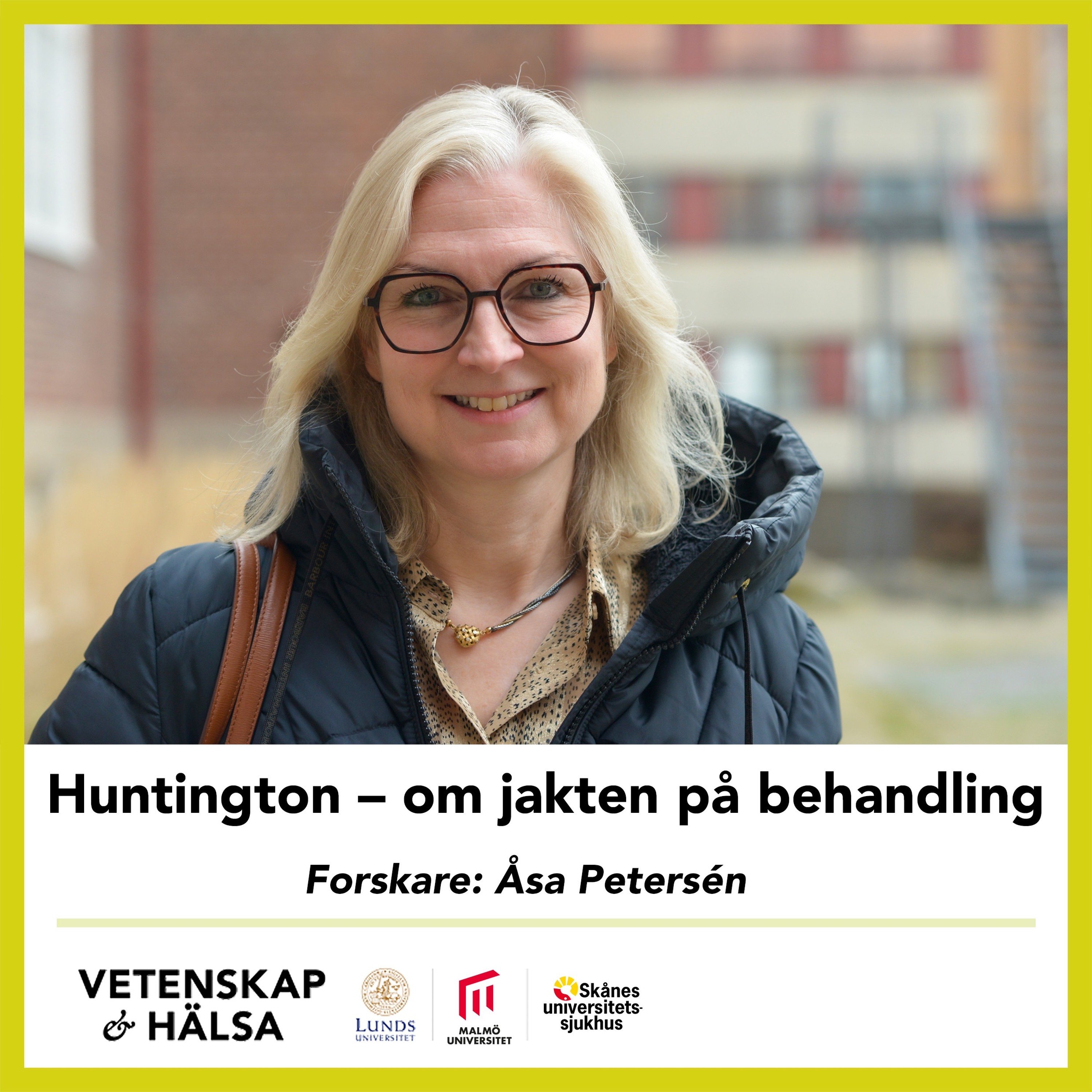 Vi intervjuar Åsa Petersén, professor i neurovetenskap vid Lunds universitet och överläkare i psykiatri på Huntingtoncentrum vid Skånes universitetssjukhus i Lund. Vi får också höra Tess som bär på genen för Huntingstonssjukdom. Intervjuar gör Eva Bartonek.
