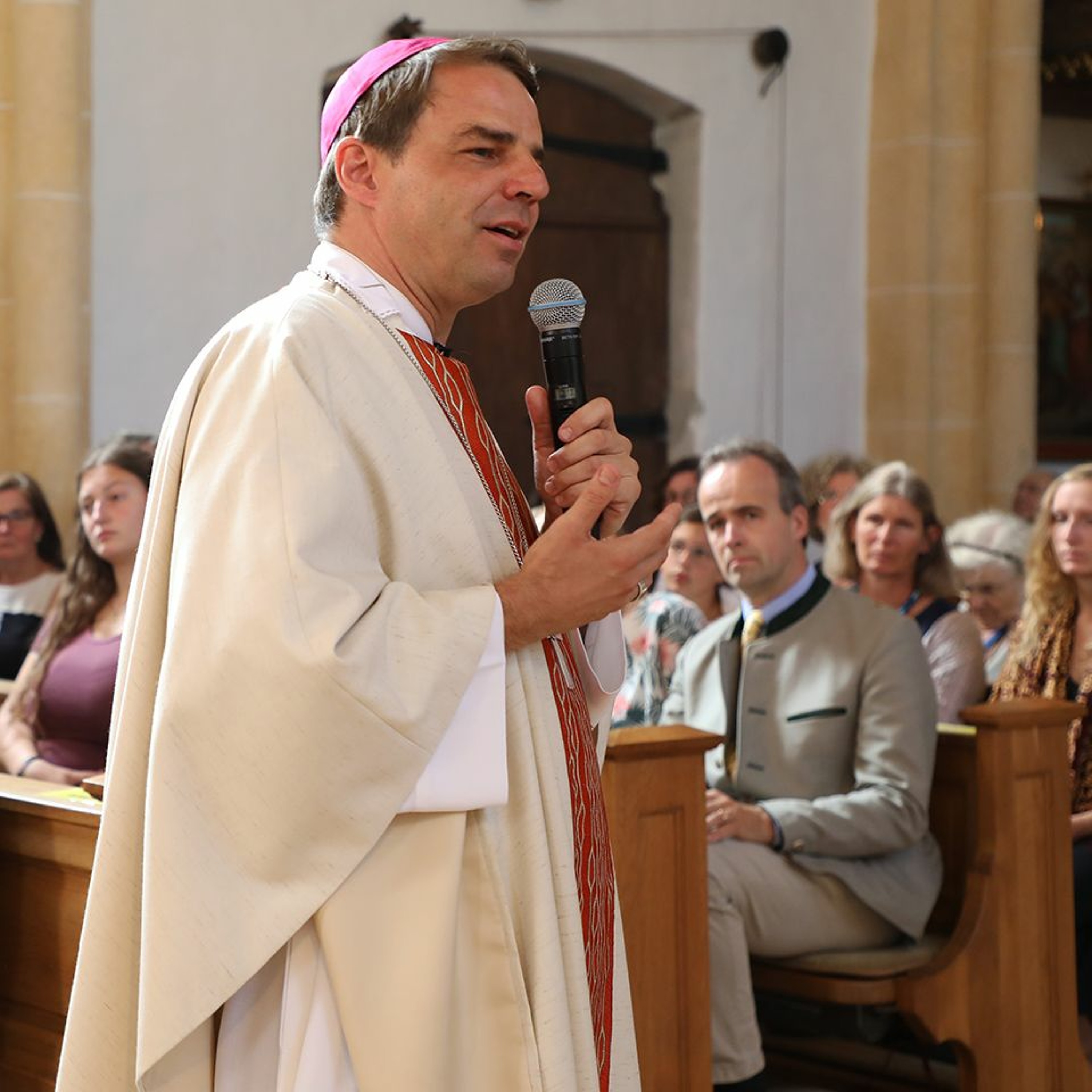 "150 Jahre Familie Ow in Piesing und Haiming" hat Bischof Stefan Oster am 11. August in Haiming mit Familienangehörigen und Gästen gefeiert. Die Familie Ow entstammt der Nachkommenschaft des Bruders (Anton) von Bischof Sigismund Felix von Ow-Felldorf (1906 - 1936 Bischof von Passau). In seiner Predigt hat Bischof Stefan das zum Jubiläum passende Thema "Familie und Heimat" aufgegriffen. Die Familie helfe dabei, heimisch zu werden, sich an einem Ort wohl zu fühlen und in eine Gemeinschaft hineinzuwachsen. Er dankte der Familie von Ow, dass sie eine solche Familienkultur hoch hält und sich für ein gutes Miteinander in der Pfarrei engagiert.