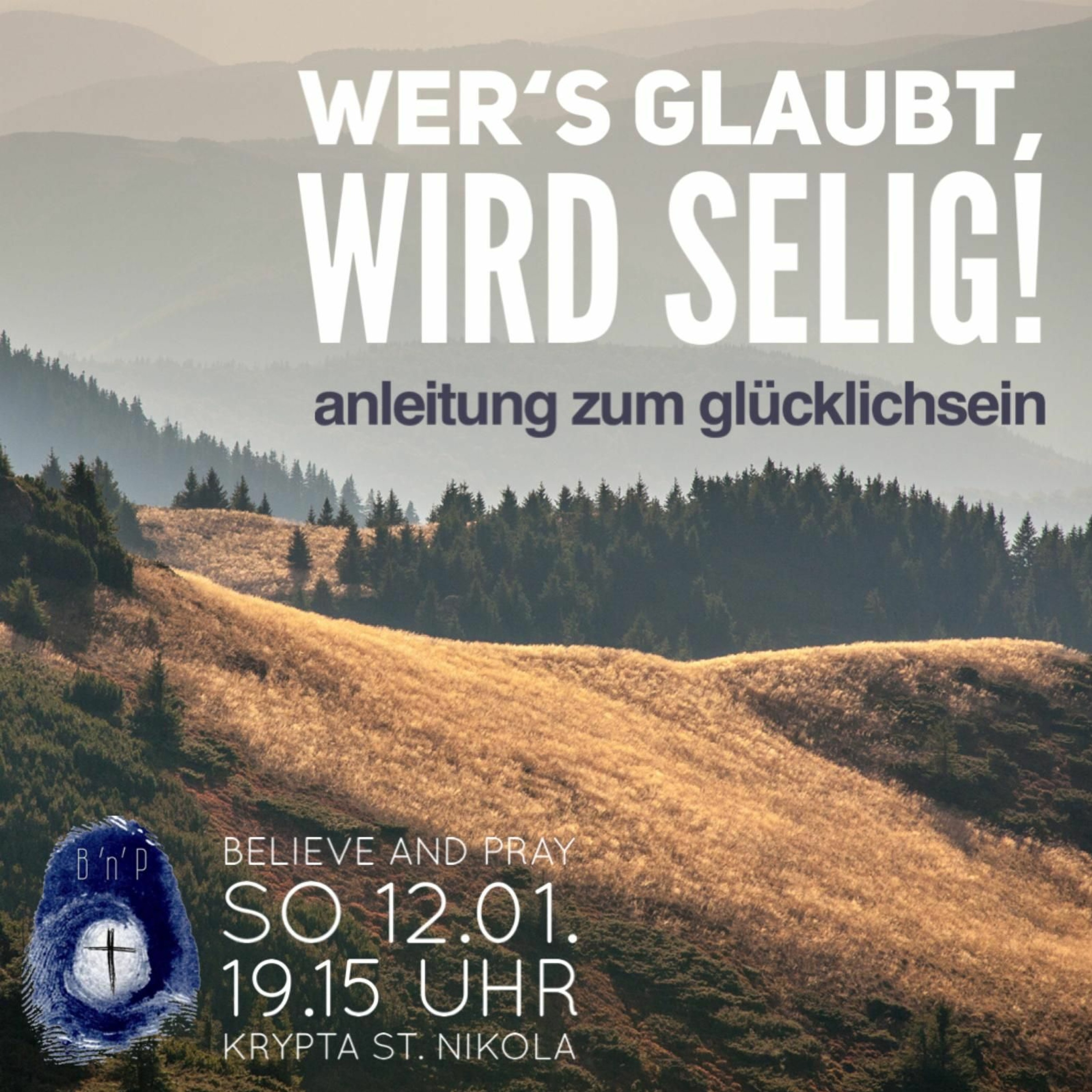 Die Folien findet ihr unter https://stefan-oster.de/wers-glaubt-wird-selig-anleitung-zum-gluecklichsein/ und weitere Informationen zu Believe and Pray unter www.bnp-passau.de