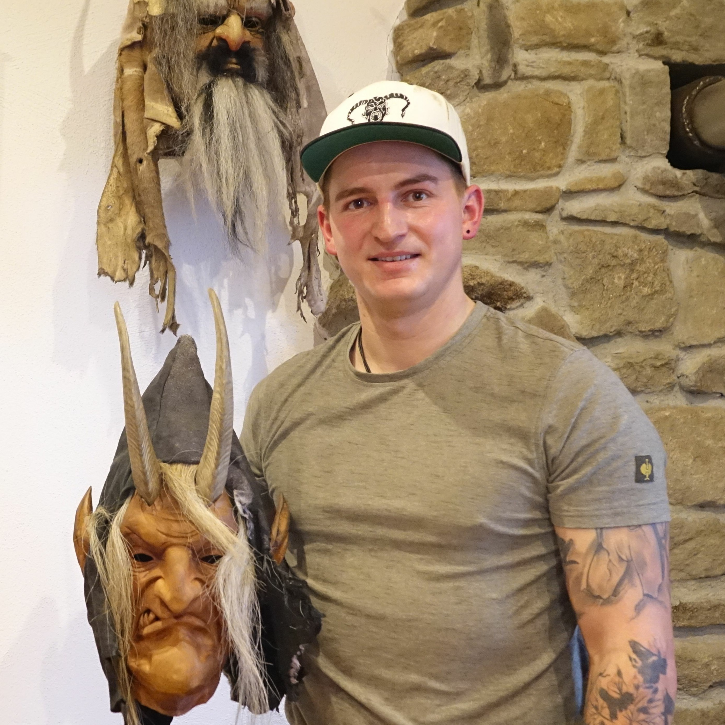 Julian Hauer kommt aus Thalberg bei Wegscheid im Landkreis Passau. Sein außergewöhnliches Hobby: Er schnitzt Perchtenmasken und schmückt damit u.a. seine Kollegen aus dem Verein "Thalberger Heandltrommler". (Bild: Tamina Friedl)