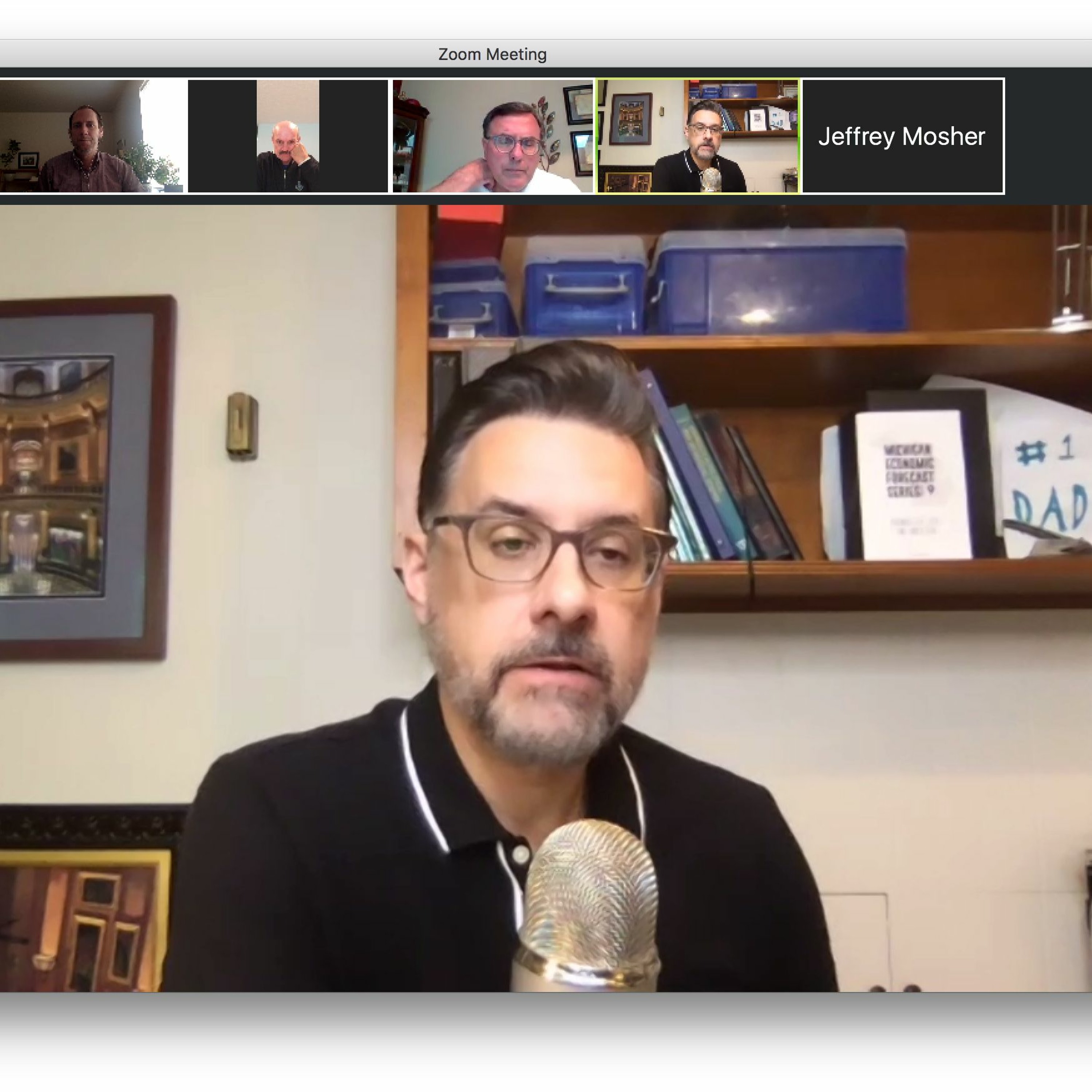 Chris Holman gathers with Bob Lapinski, Media & Public Relations Advisor, AF Group, Chicago, IL and Paul King, President, ROI Insight, Grosse Pointe, MI, to discuss findings from the Spring 2020 Michigan Future Business Index COVID-19 Impact Survey.