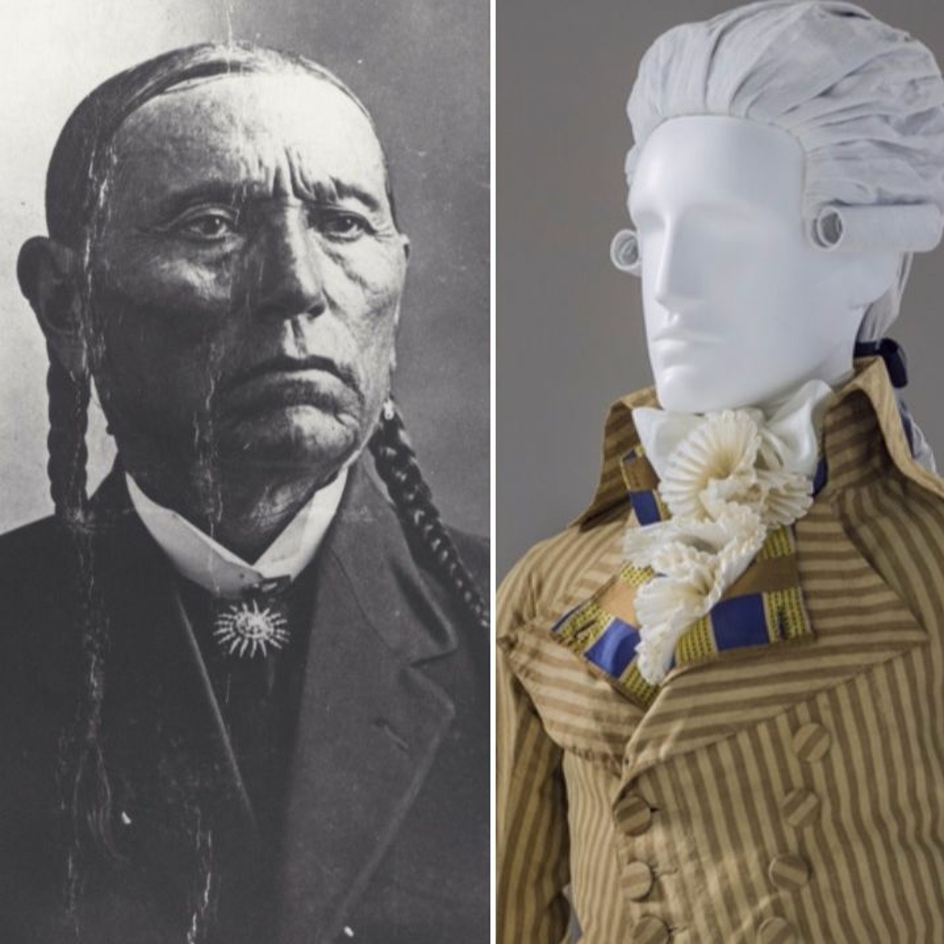 Image Credit: Left: Comanche Cheif Quanah Parker, right: Man's ensemble, from Reigning Men courtesy of LACMA
