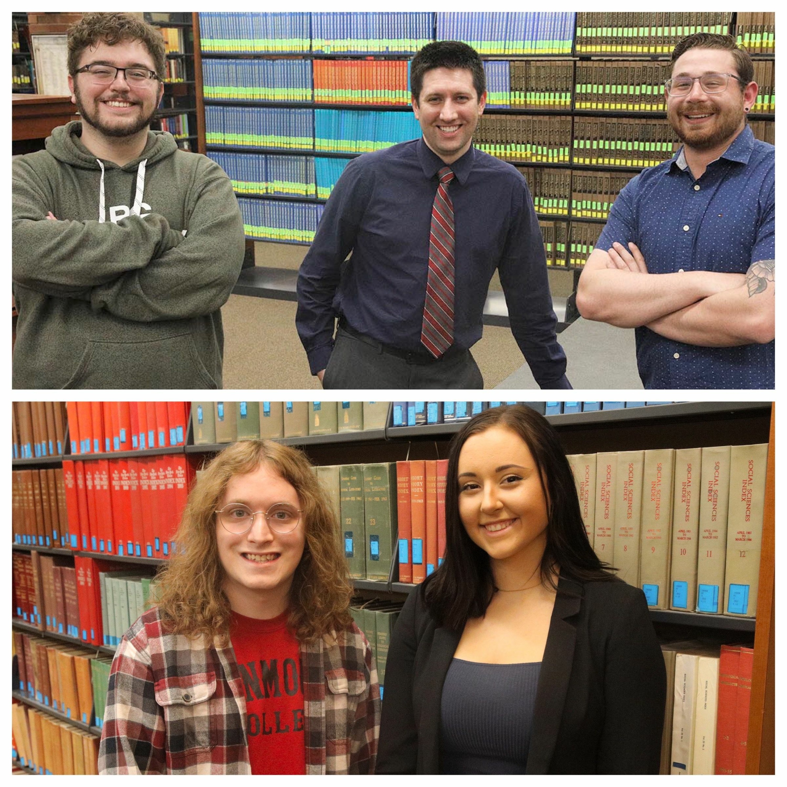 Political science research by seniors Grant Miller (top, left) and Matt Datlof (top, right) and professor Andre Audette (top center); juniors Shay Hafner (bottom, left) and Ally Clay talk about being accepted into the prestigious Fund for American Studies summer program (interview begins at 9:50).