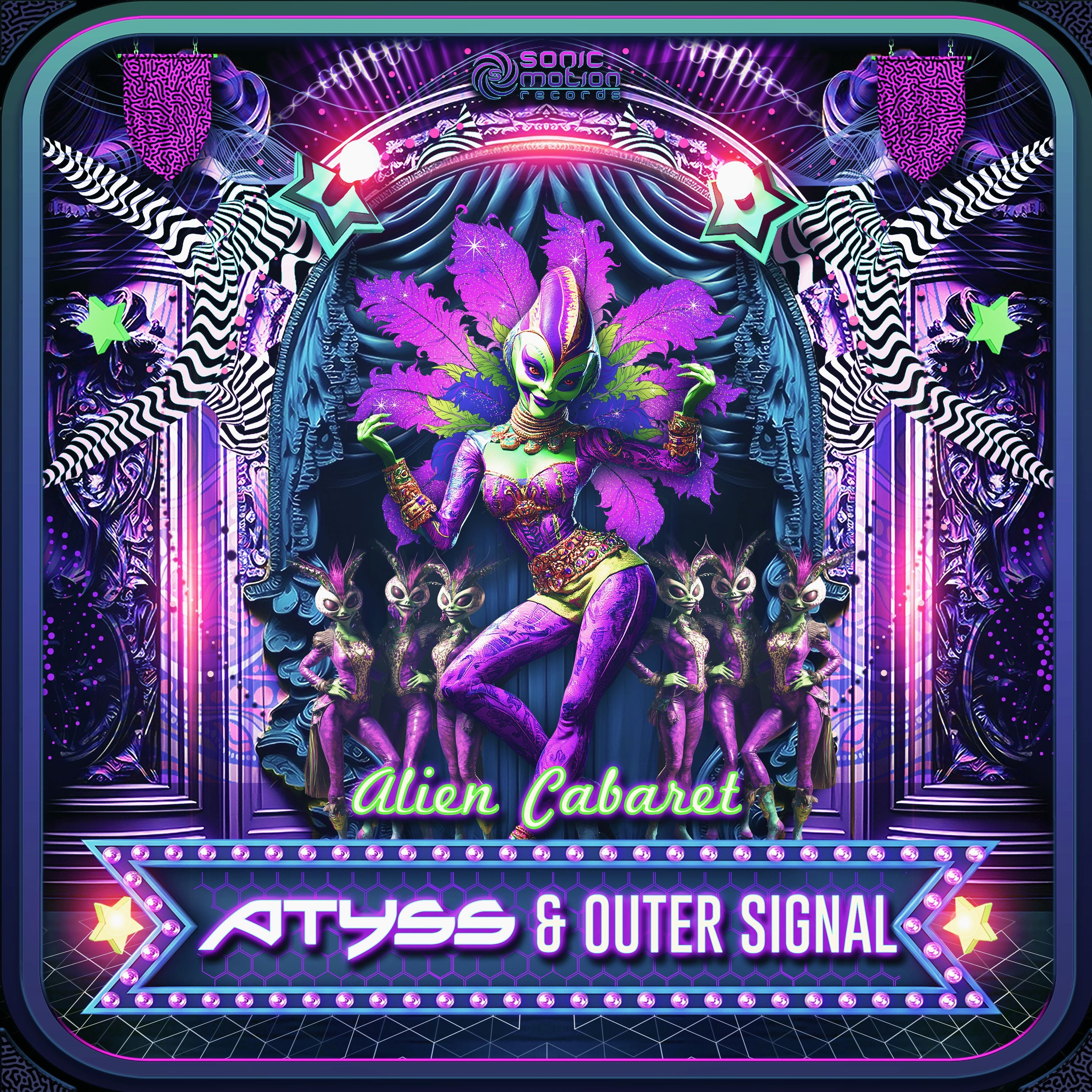 Sonic Motion Records is proud to present Atyss and Outer Signal’s latest offering "Alien Cabaret", which as ordered delivers a relentless festival-ready groove, fueled by thumping basslines and groovy, distorted riffs.