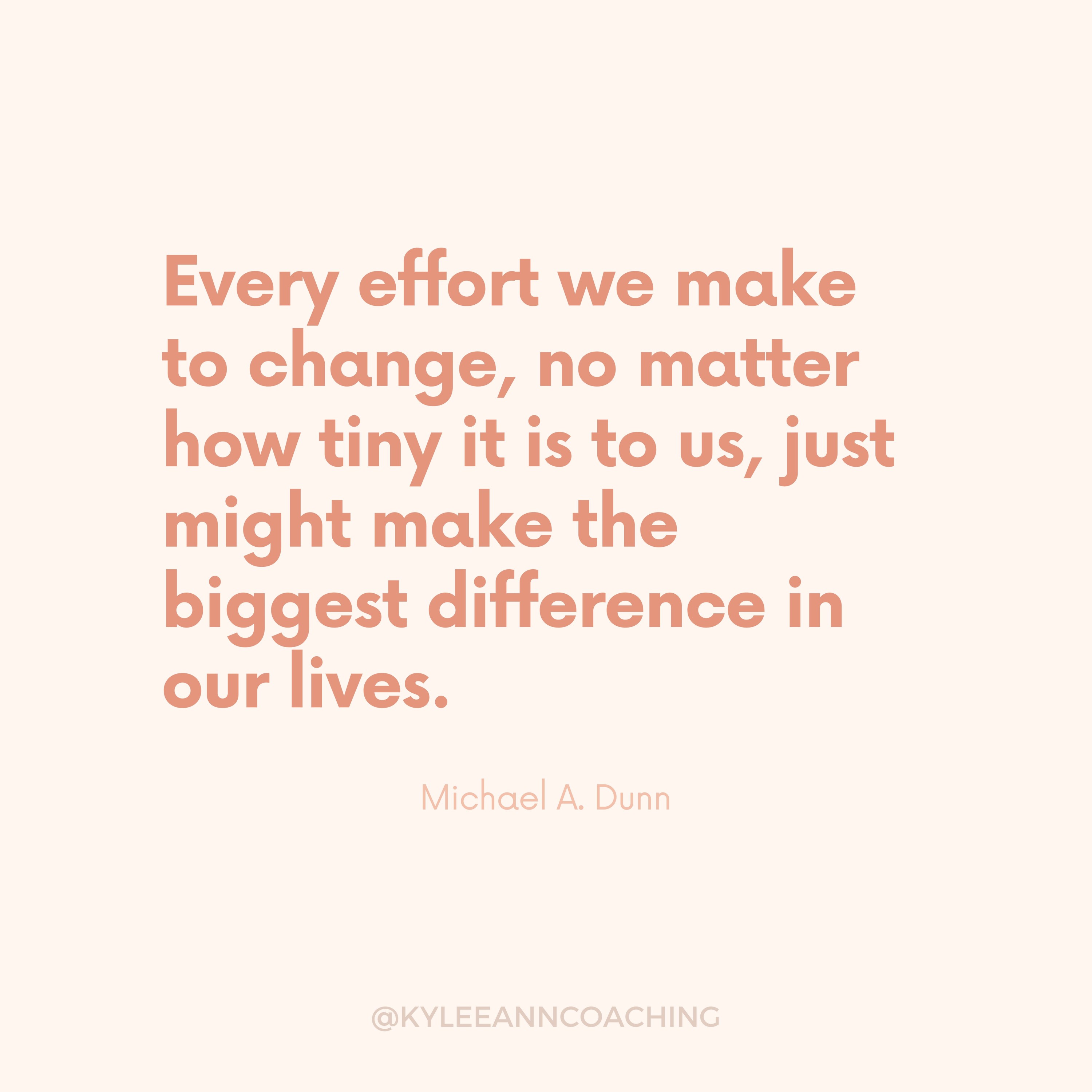 I want to leave you with one last quote by Michael A. Dunn! “Every effort we make to change, no matter how tiny it is to us, just might make the biggest difference in our lives.”