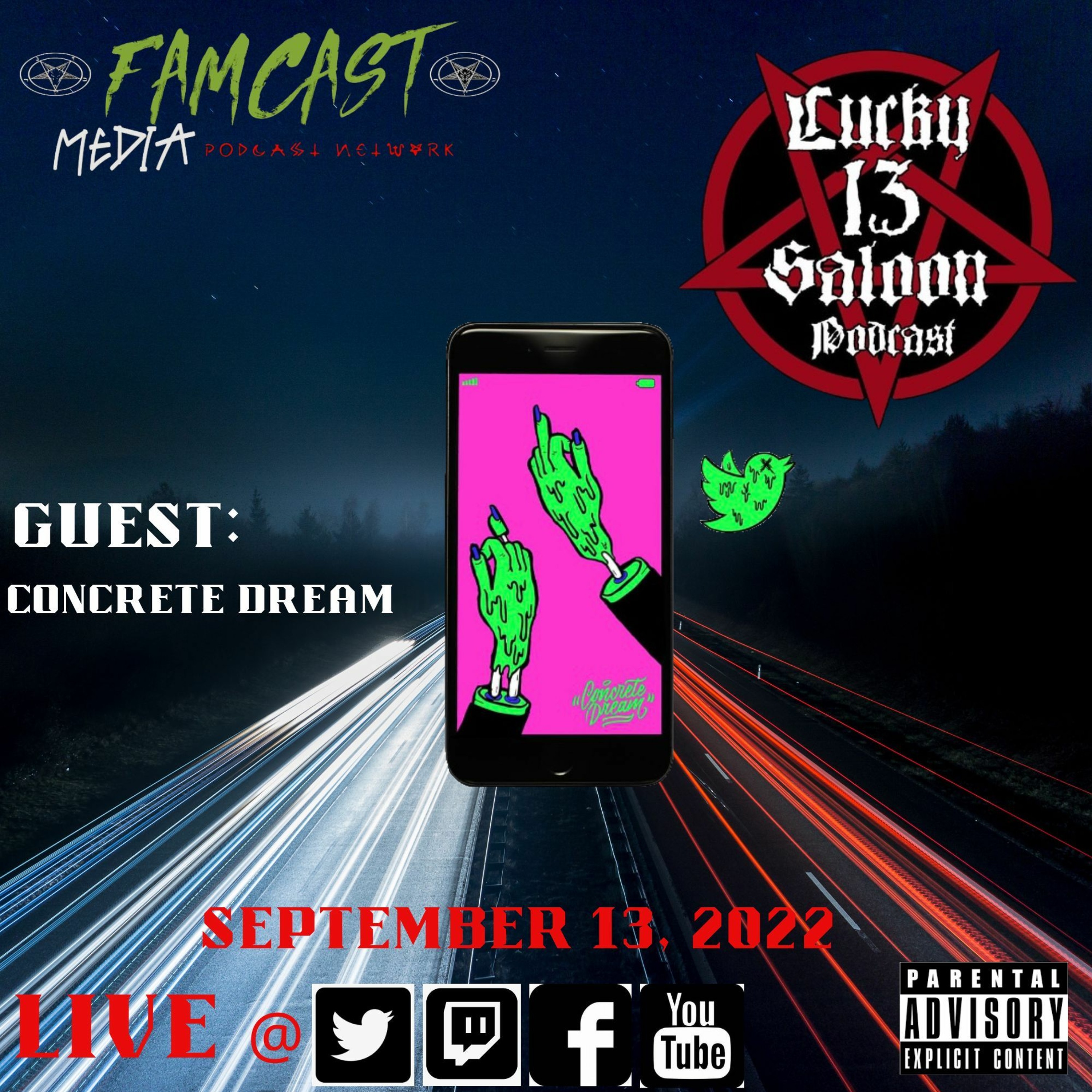 (Lucky 13 Saloon Podcast Social Media)
