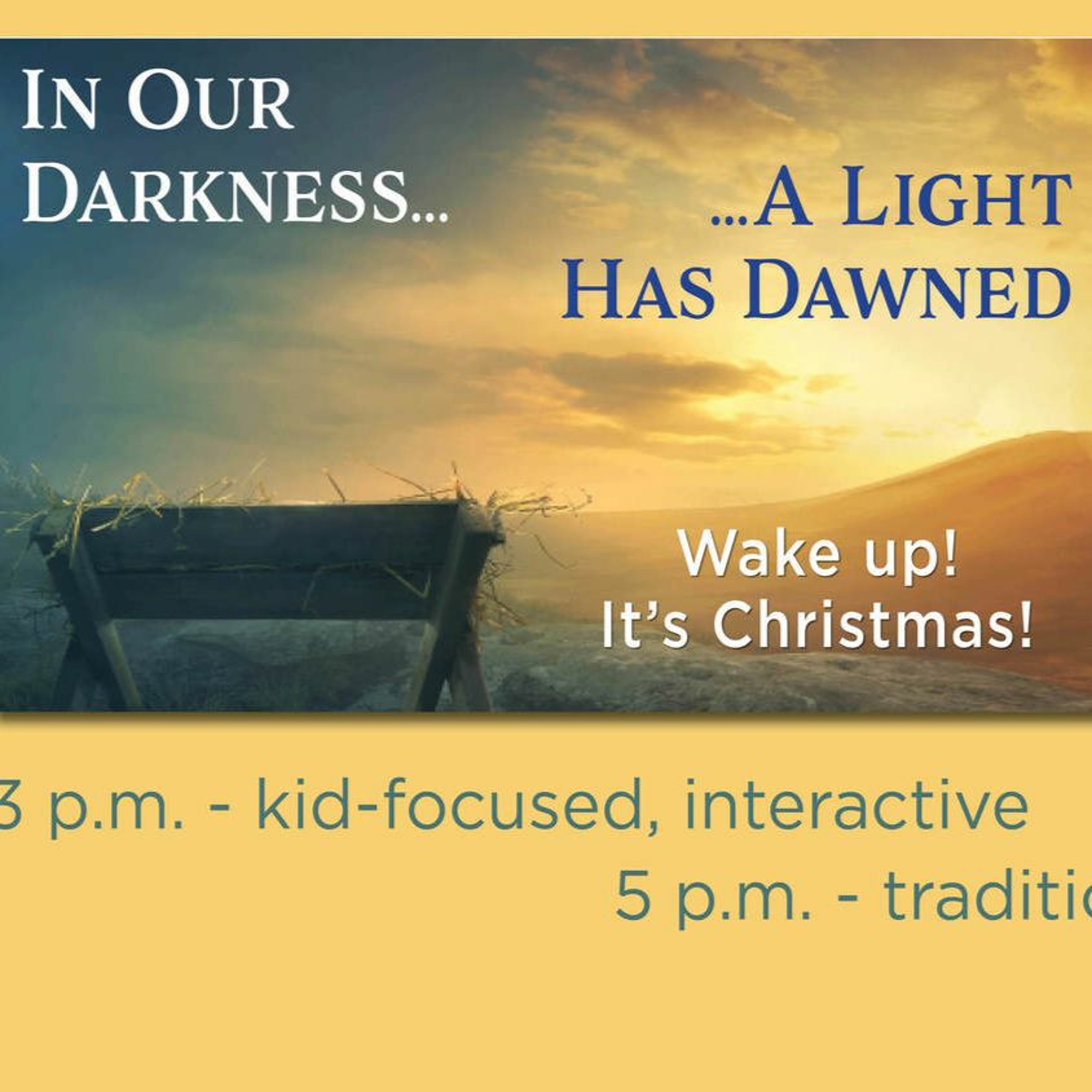 Remember those words when you were a kid? “Wake up! It’s Christmas.” Then it was a rush to see gifts under the tree. It’s similar to the message announced by shining angels to now-wide-awake shepherds one dark night, “Do not be afraid! . . . A Savior has been born to you.” Then they scurried into Bethlehem to see the child. It can also be your story this Christmas. “The people walking in darkness have seen a great light; on those living in the land of deep darkness a light has dawned” (Isaiah 9:2).