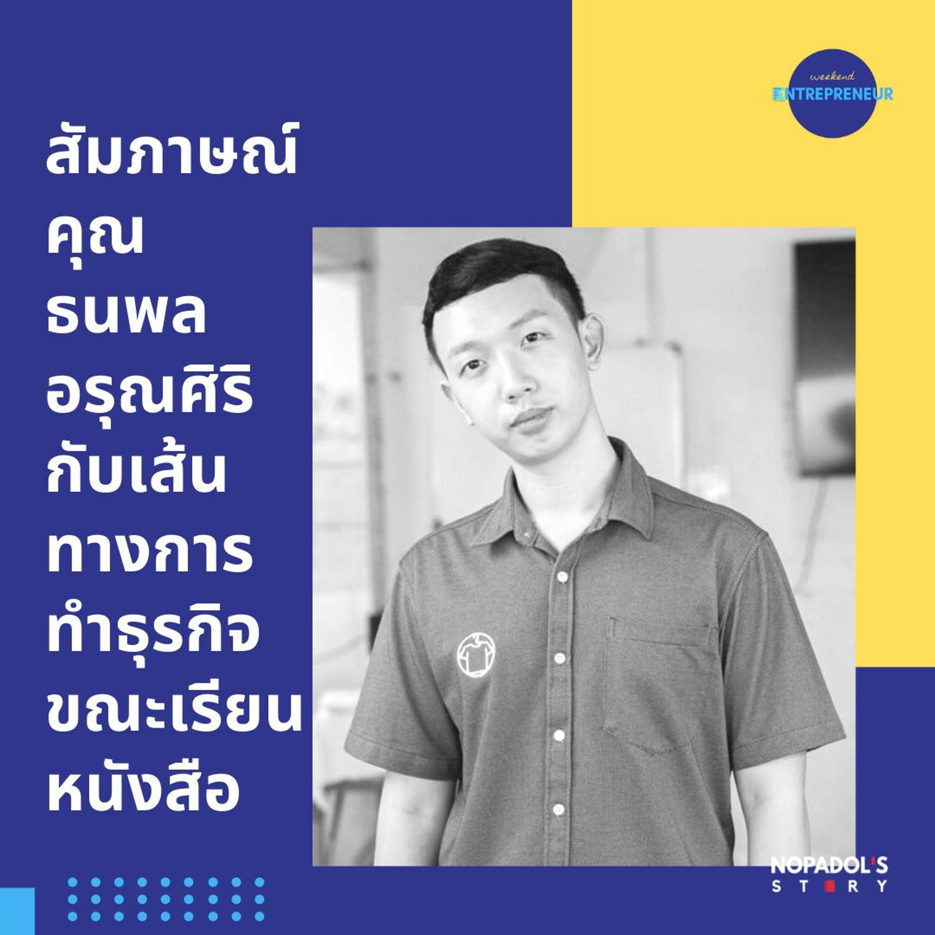 ท่านใดที่คิดว่าไม่มีเวลา ไม่มีเงินทุน เลยน่าจะเป็นผู้ประกอบการวันหยุดไม่ได้ อยากให้ลองฟัง Episode นี้กันครับ ผมได้มีโอกาสสัมภาษณ์คุณแบงก์ ธนพล อรุณศิริ เจ้าของแบรนด์สมศรีมีเสื้อที่เริ่มทำธุรกิจตั้งแต่เรียนอยู่ชั้นมัธยมปลาย เผื่อได้ Idea และแรงบันดาลใจในการเป็นผู้ประกอบการวันหยุดกันนะครับ