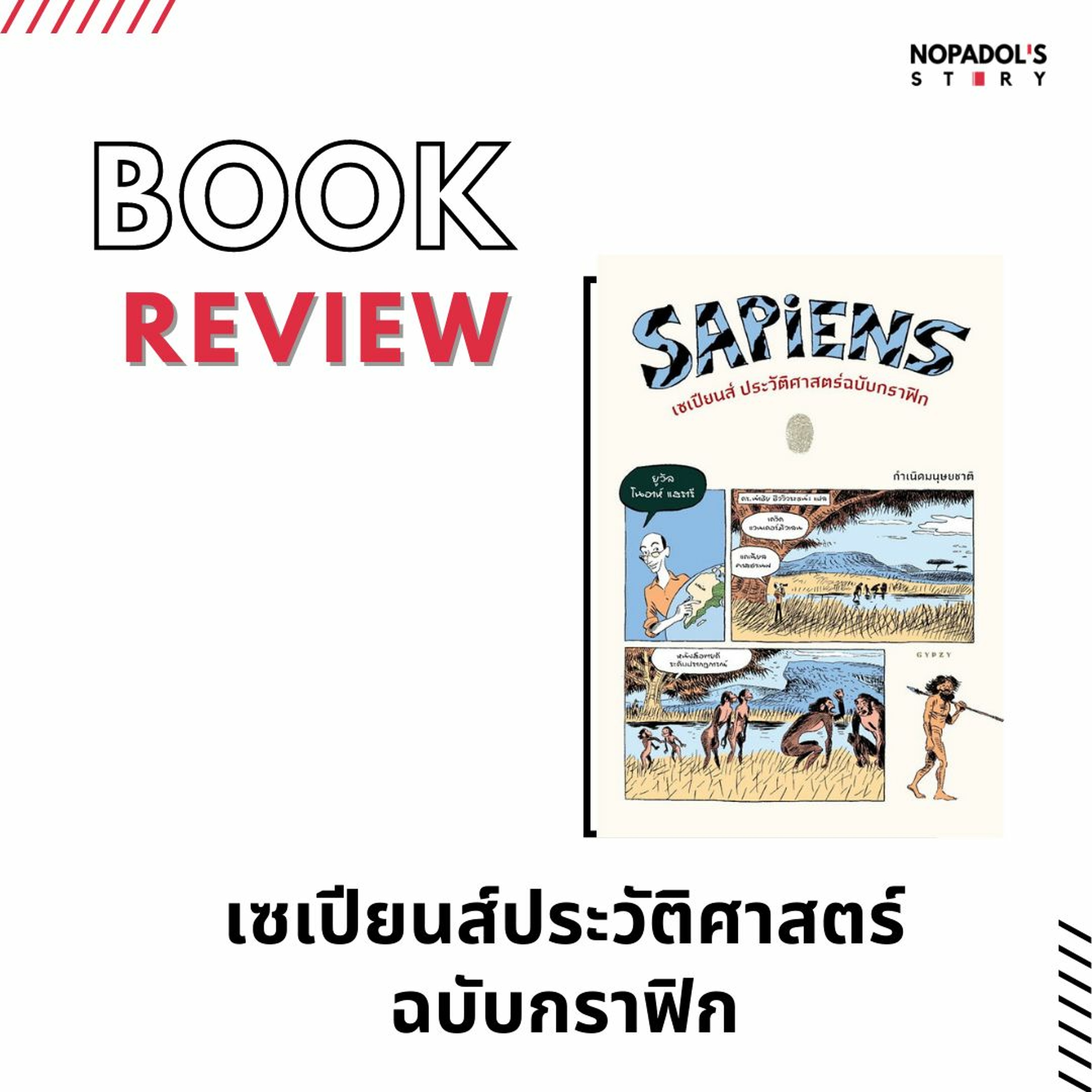 เป็นหนังสือที่เล่าถึงประวัติศาสตร์ของมนุษย์พันธุ์เซเปียนส์ที่เป็นเผ่าพันธุ์ของมนุษย์ในยุคปัจจุบัน โดยเป็นการเล่าผ่านรูปภาพ โดยเล่มนี้จะเล่าจนถึงก่อนมีการปฏิวัติเกษตรกรรม ลองฟัง Review กันได้ครับ