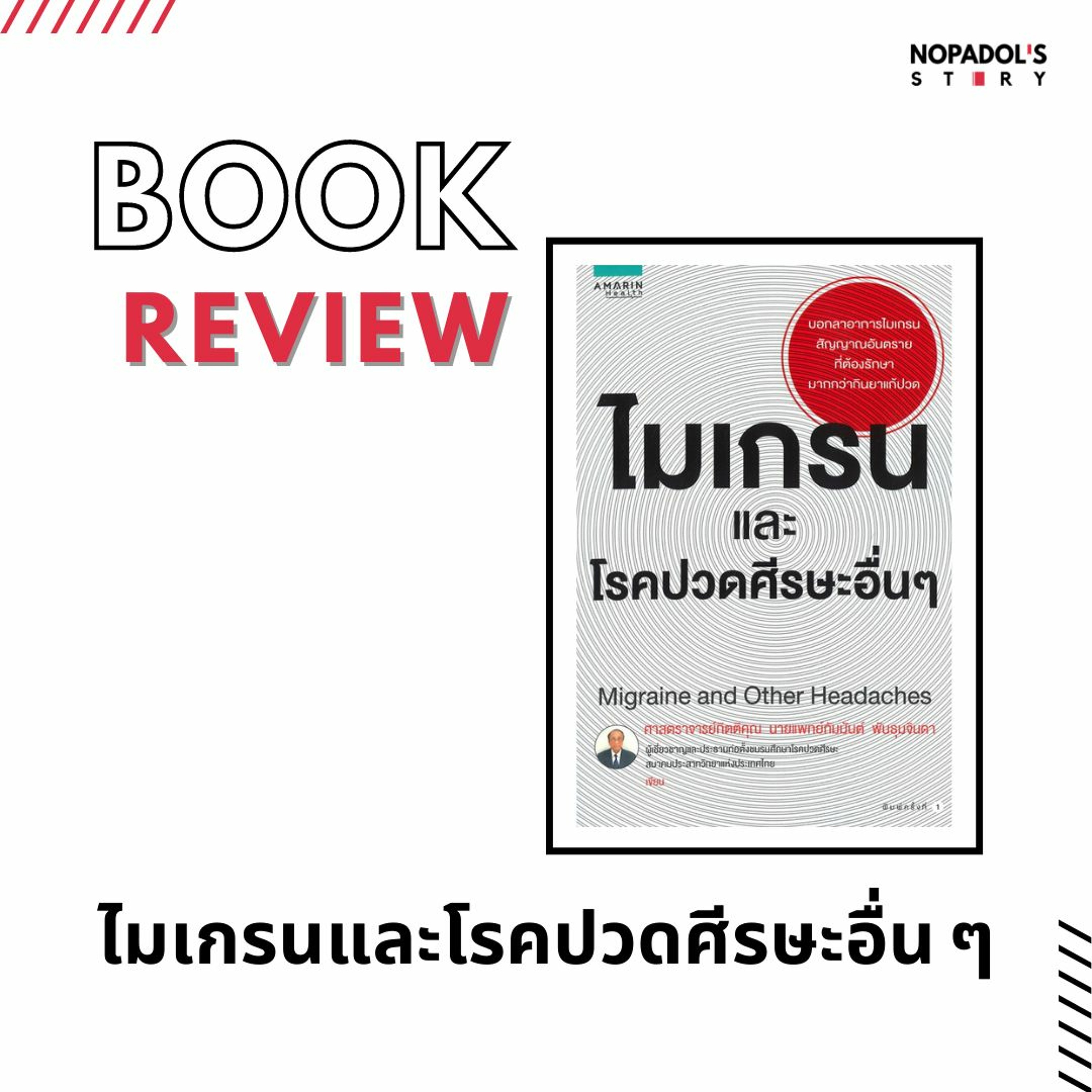 หลายคนอาจจะมีปัญหาเกี่ยวกับไมเกรนหรือปวดศีรษะอื่น ๆ หนังสือเล่มนี้ได้ให้ความรู้เกี่ยวกับโรคนี้ และแนวทางแก้ไขปัญหา ลองฟังกันเผื่อเป็นประโยชน์ครับ