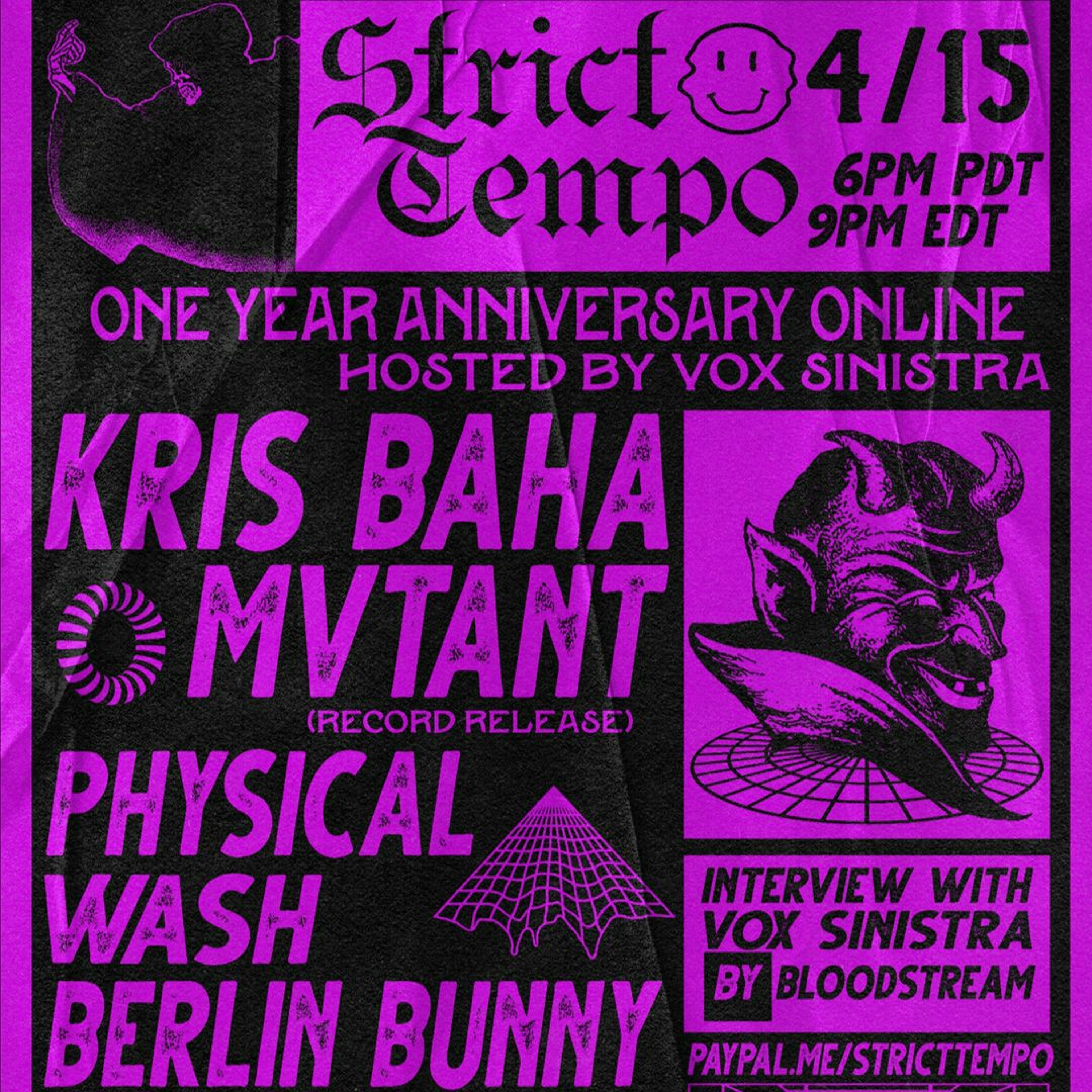 Full show with sets from Kris Baha, MVTANT, Physical Wash, Berlin Bunny and DMTH - https://youtu.be/ukPzKmEmaZk