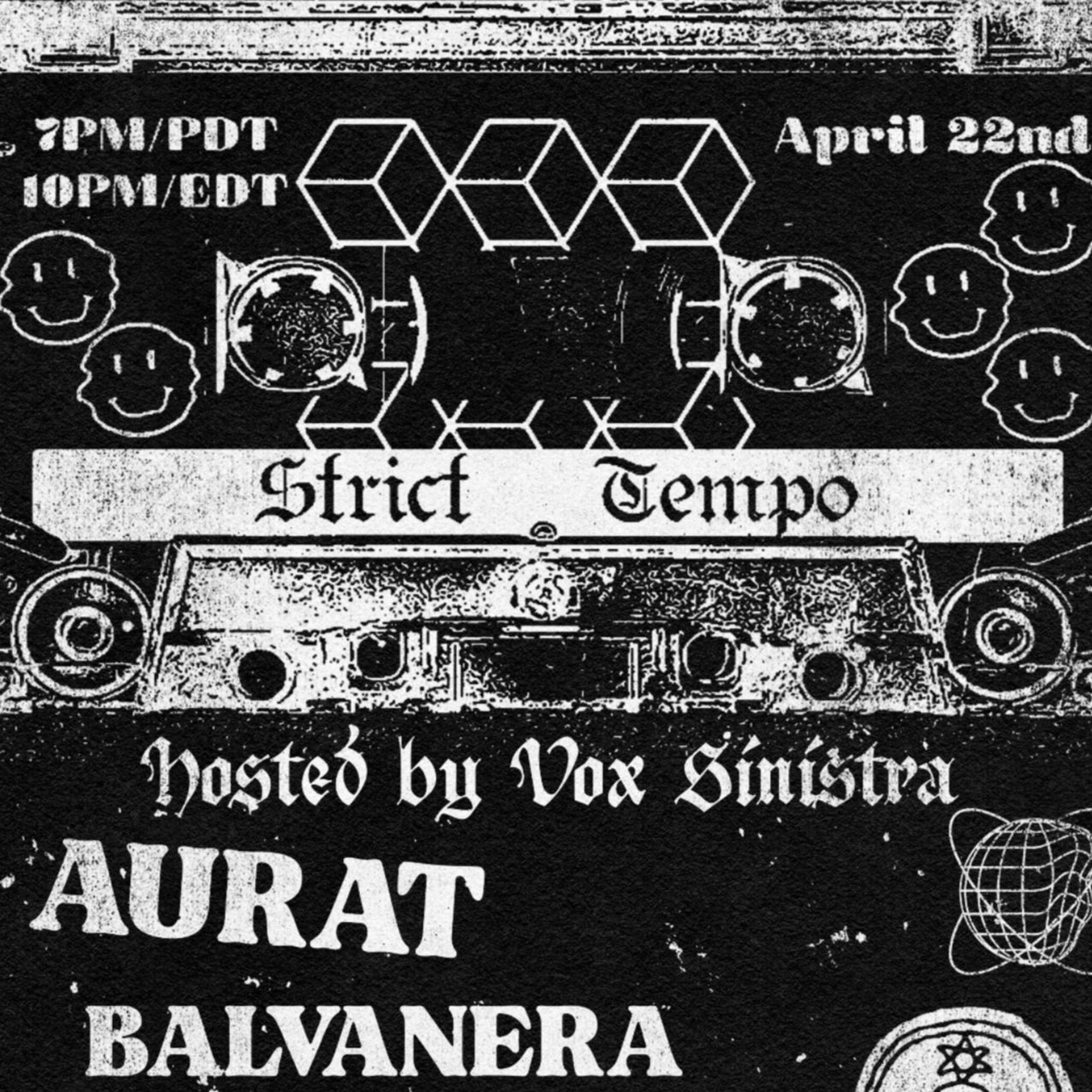 Seattle-based DJ Vox Sinistra plays underground electronic music including EBM/industrial, New Beat, acid/electro/techno, Italo disco/hi-nrg, and all things cold, dark and wave-y. Host of dark synth club night Strict Tempo (currently on Twitch)