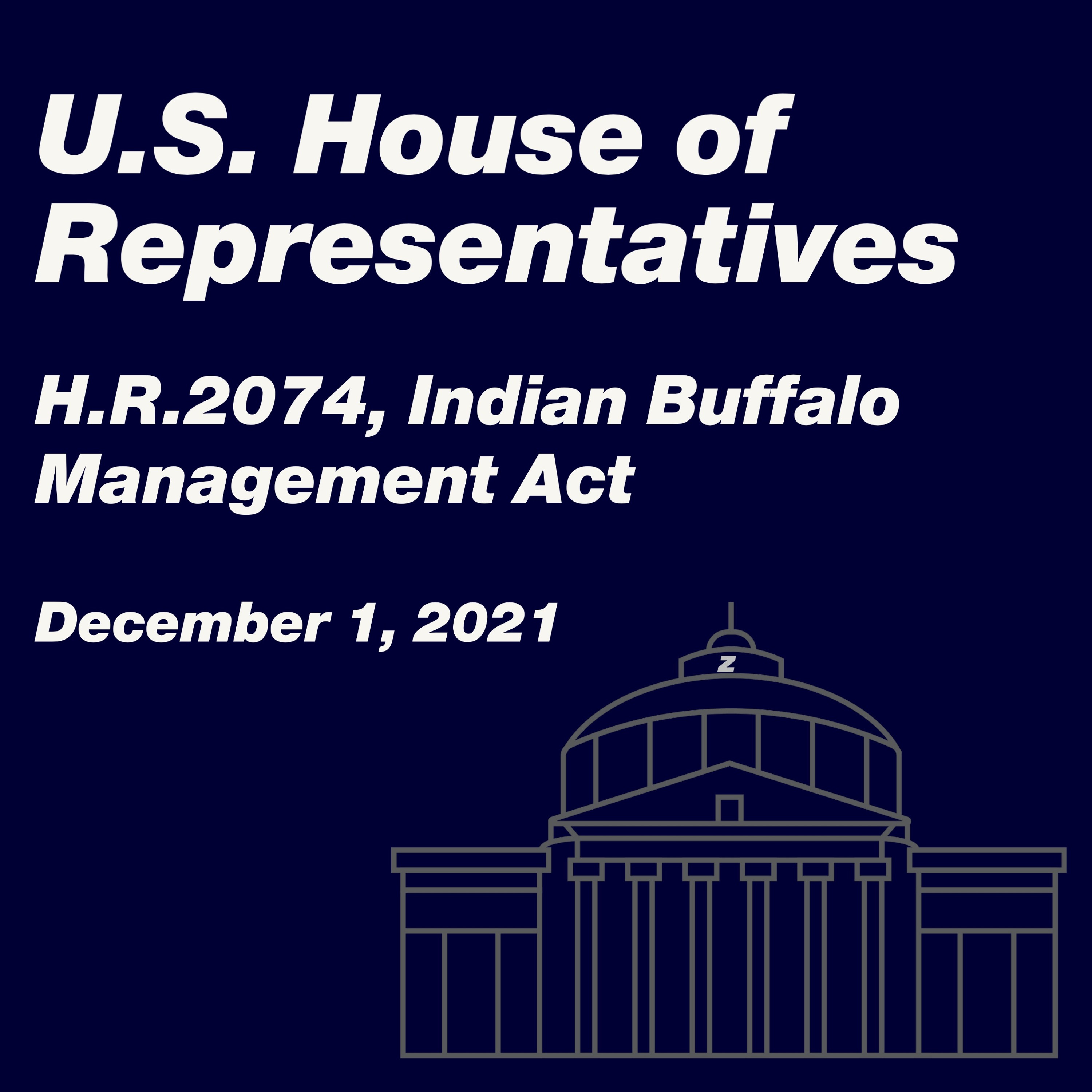 The U.S. House of Representatives considers H.R.2074, the Indian Buffalo Management Act, on December, 2021.