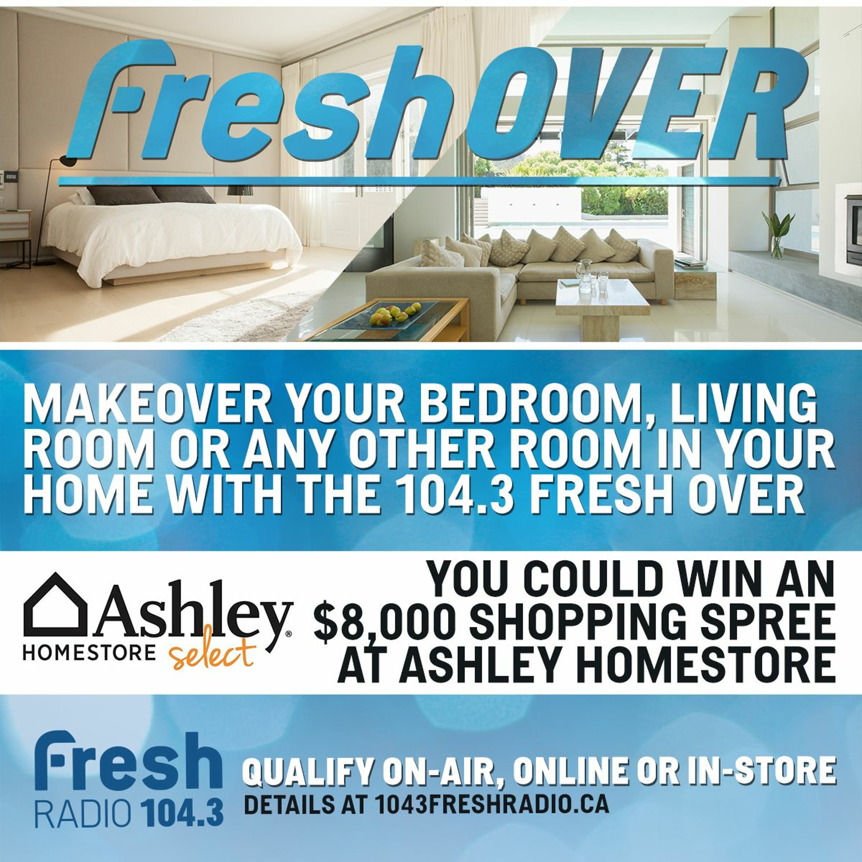 For the last little while we have been qualifying listeners online/in-store and on-air for the FRESH OVER brought to you by Ashley Home Store in Kingston! Congratulations Christine!