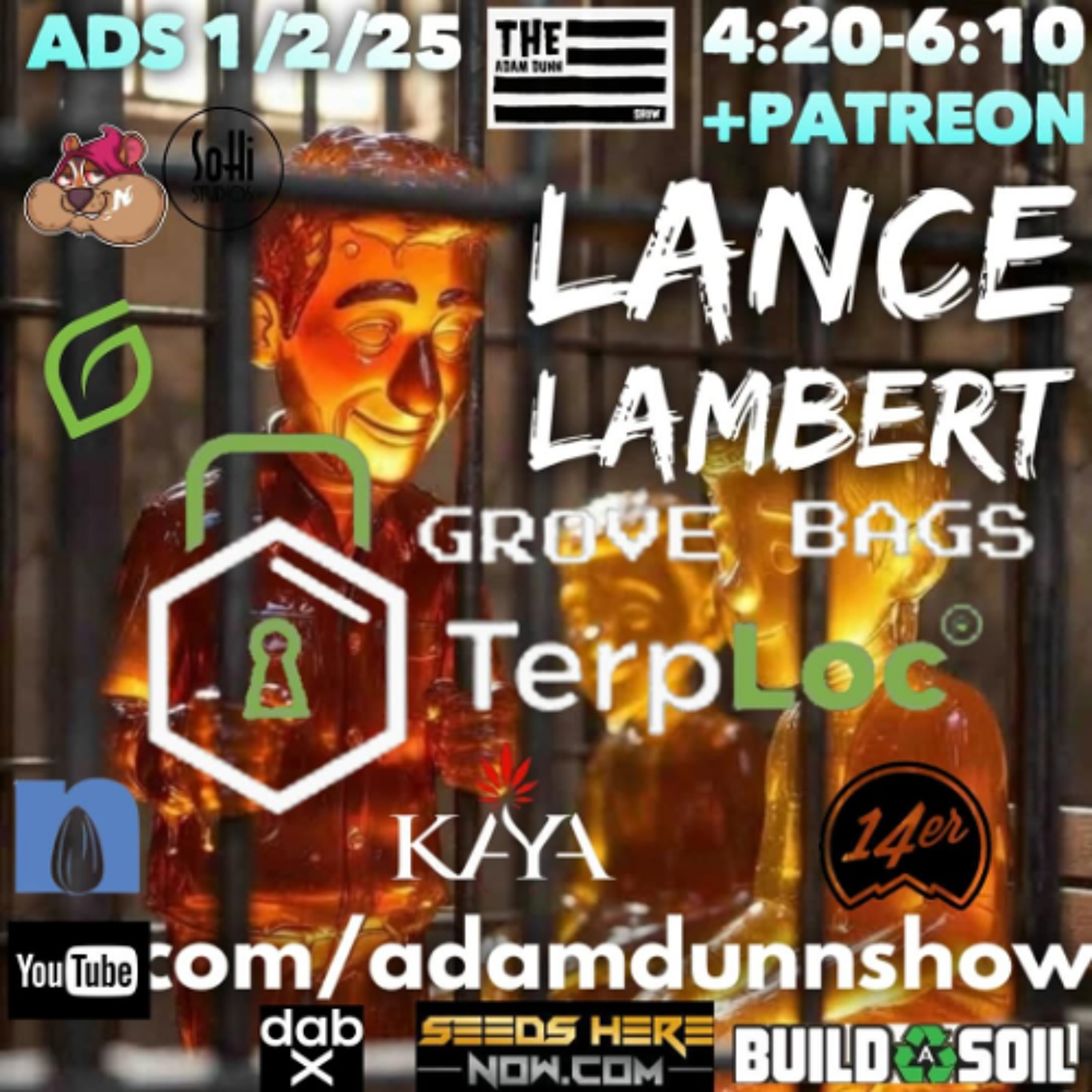 We are Locking down the first show of the year with our friend and sponsor of the show Lance Lambert @805lance from @grovebags_ with their patented Terploc technology. If you are a grower/manufacturer or processor these are the bags you need. Whether youβre in a dry environment like here in Colorado or a humid environment like the northeast Your product will stay at the perfect 58 to 62% range. We love seeing Grovebags being used in all the serious canna competitions and they are quickly becoming the standard. Lance has the enviable position as the international sales guy if you follow his IG heβs usually taking off or landing at the latest cannabis event , he also loves classic cars and has some amazing projects in the works. So get that @dabx GO rig charged your @jerome_baker bong Clean with some ice π§ for good measure Roll up some π₯from @kaya_colorado in your @yoproductsllc Yo-Tips and get ready to rock for another edition of youtube.com/adamdunnshow 4:20 to 7:10 MTβ€οΈπ₯πβοΈπππ±π¦¨ποΈππ€ππ₯―ππβπ«π #sagemastaselect#seedsherenow#buildasoil #DabX #numbnuts