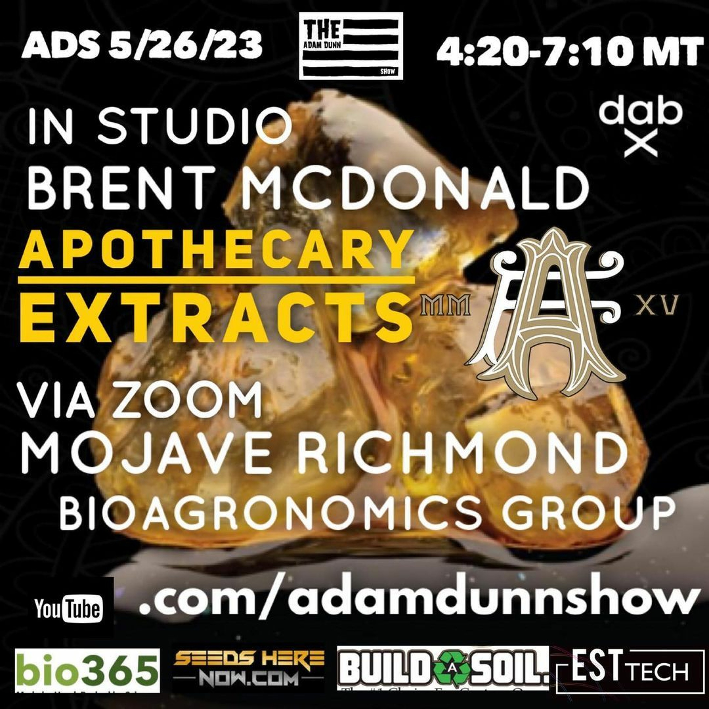 In Studio this week we have the honor of having Brent McDonald the man behind Colorado’s first extract focused dispensary @apothecaryextracts.co Started here in Colorado Apothecary extracts has expanded into Oklahoma and now has even more retail shops there. We will delve into world of BHO and Rosin and get updated on the mega grow in the works. Coming on for the second half of the show Mojave Richmond @mojubal my brother from another mother who these days is partnered with Robert Connell Clarke at BioAgronomics to consult on cannabis and hemp projects. An amazing grower musician, writer and photographer Mo is a real renaissance man. Together Mo and I have literally over a 100 years of stories from our cannabis fueled youth to the inception of the S.A.G.E in his backyard in Amsterdam. Expect this to go off the rails at some point. So get that @dabx GO rig charged your @jerome_baker bong Clean with some 🧊 for good measure and your @yoproductsllc Yo-Tips ready to rock for another three hour edition of youtube.com/adamdunnshow 4:20 to 7:10 MT