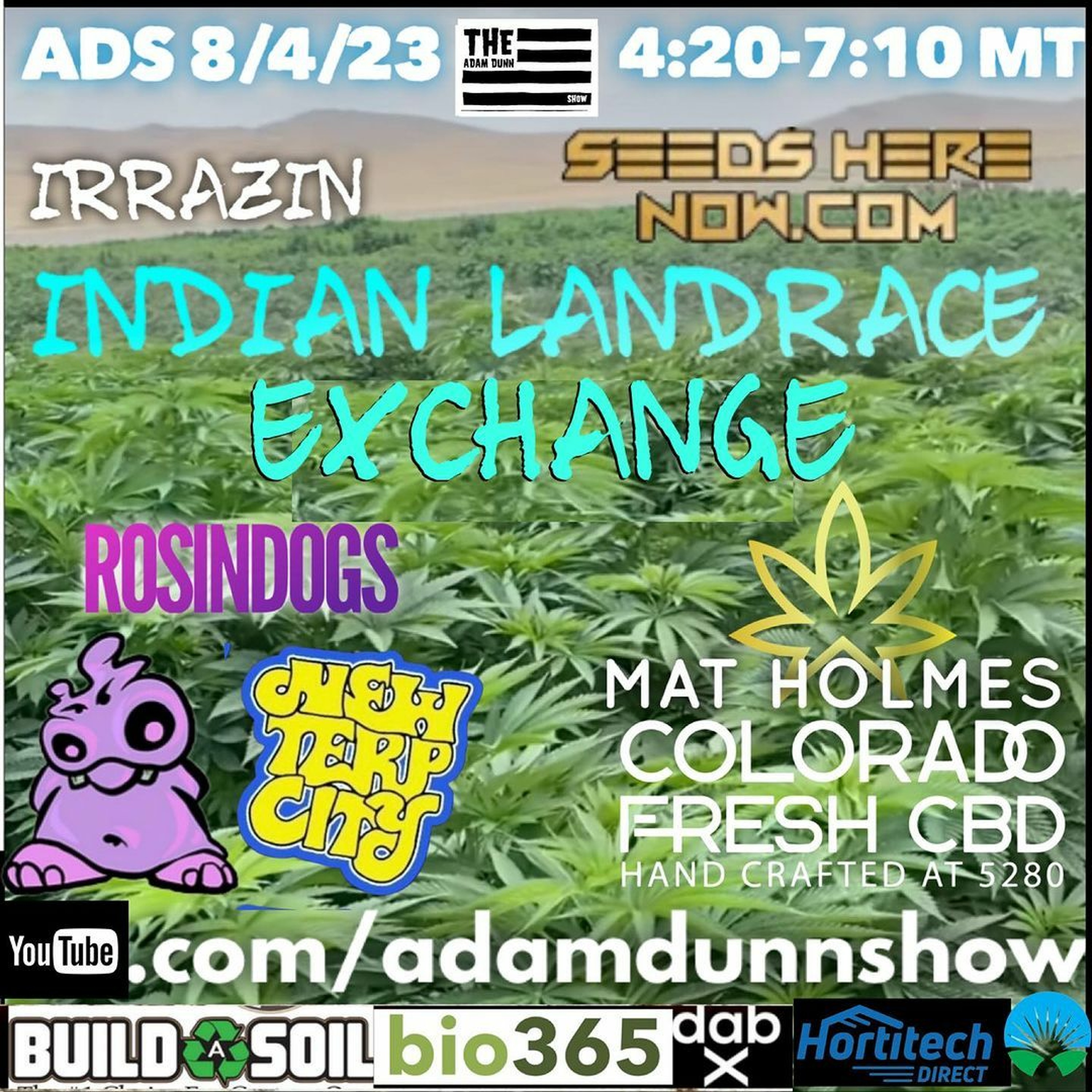 Our friend Irrazin from Indian Landrace Genetics will be back on the show with a mid summer report from the fields. It’s been over 2 years since we last had Irrazin on the show but that’s like 10 years in Cannabis time. If you’re not familiar with his work check out his IG @irrazinig and you can step into another world,a ancient world of cannabis and hash production with small independent farmers producing Traditional Hash in a myriad of techniques.Through his journalism and cannabis documentation Irrazin is preserving some of this knowledge and helping us secure some of this for future generations. He is a true cannawarrior really looking forward to this always amazing conversation with this man. Thanks to James bean man on the scene from @seedsherenow for putting together yet another stellar show. We will be blessed with the award winning @sourfamilyfarms Rosindogs himself fresh from yet more multiple wins with New Terp City this time @ Hitmans latest contest The “SWEETTOOTH” competition that was held last week in NYC. Speaking of Fresh also joining us in studio our latest sponsor Mat Holmes the man behind @coloradofreshcbd is back in a the studio this time jumping in on our rotating co-host position, Mat Was feeling pretty good behind the mic and has a whole bunch of great products, projects and and info to share with our listeners so what better way than just hang out with with us and you for for another cannabis fueled show . So get that @dabx GO rig charged your @jerome_baker bong Clean with some 🧊 for good measure and your @yoproductsllc Yo-Tips ready to rock for another three hour edition of youtube.com/adamdunnshow 4:20 to 7:10 MT#indianlandracegenetics#coloradofreshcbd#warpt4life #davesstillhere #herbanhouse #seedsherenow#sohicafe #sagemastaselect