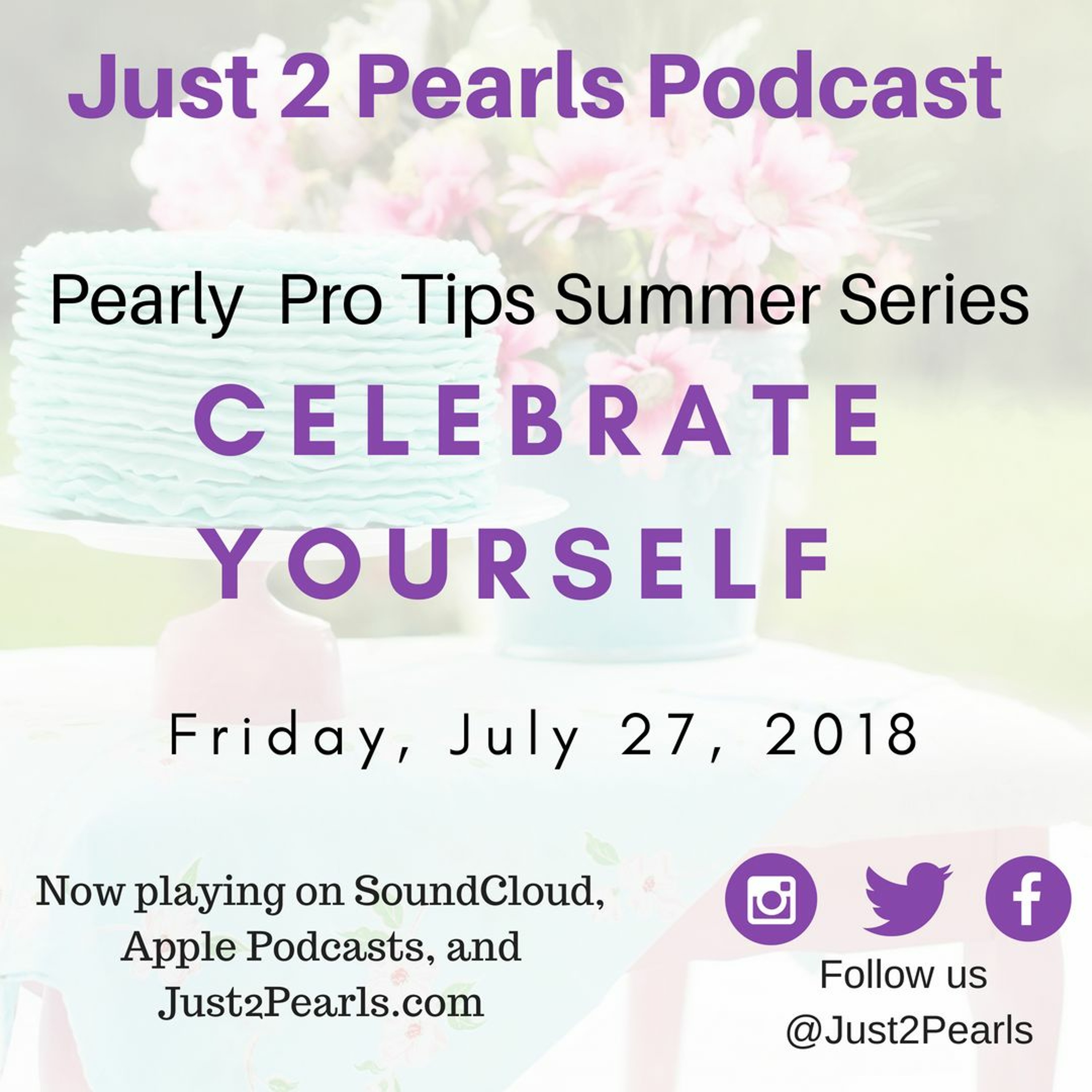 Hey, Pearls! It is Jaimie's birthday! In honor of this day, Jaimie and Porsha's third pro-tip of the summer is to celebrate yourself! There is so much going on in the world, so remember to take time to appreciate the sweet moments. Let your hair down, listen to a favorite song, enjoy a sweet treat, get a manicure. Do something that shows your appreciation for all the unexpectedly beautiful parts of this life. Do you want to celebrate this show? Tell a friend that they can listen to us on SoundCloud, Apple Podcasts, or just2pearls.com. Follow us on Facebook, Instagram, and Twitter @just2pearls. Until next time, celebrate yourself, and remember to cultivate the pearl within you!
