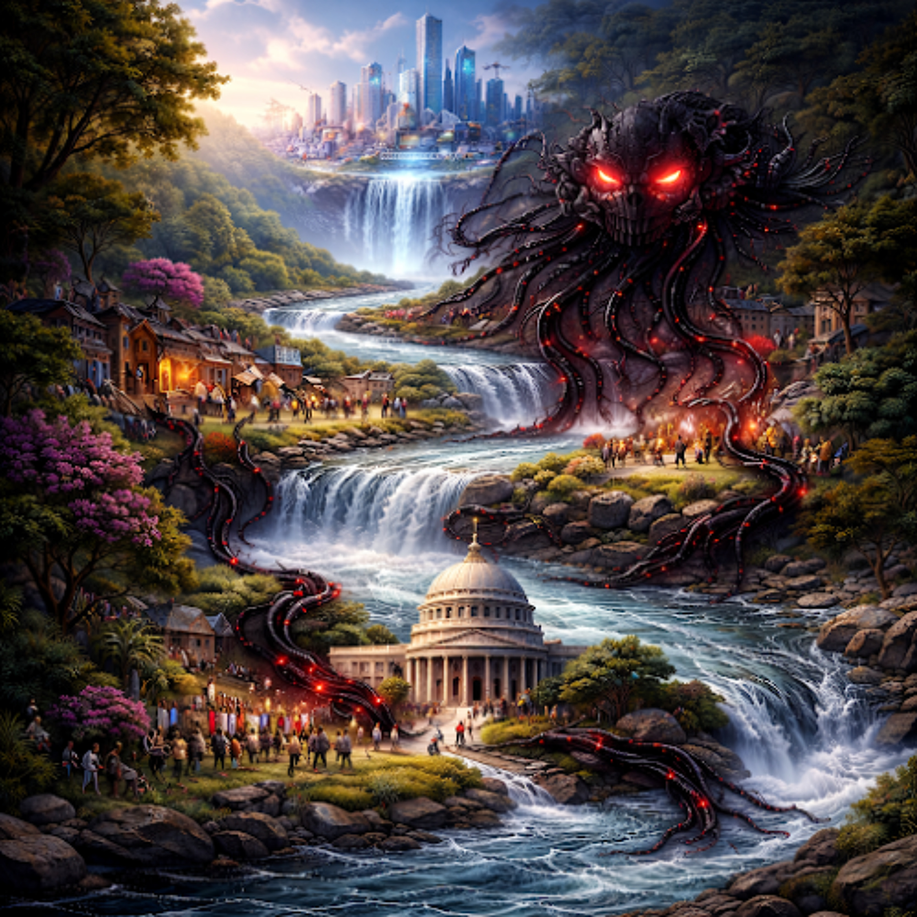 Det inre partiet paddlar idag uppströms från vårt styrelseskick demokratin, upp mot kulturen och når till slut flodens källa: teknologin. Vad händer med demokratin när teknologin ändras? Vi börjar med att gå igenom jordbruk, borgar och soldater. Därefter analyserar vi hur AI kommer att påverka balansen mellan människans medinflytande och oligarkin. Vad ska vi göra för att inte behöva bli slavar till Musk Jr?