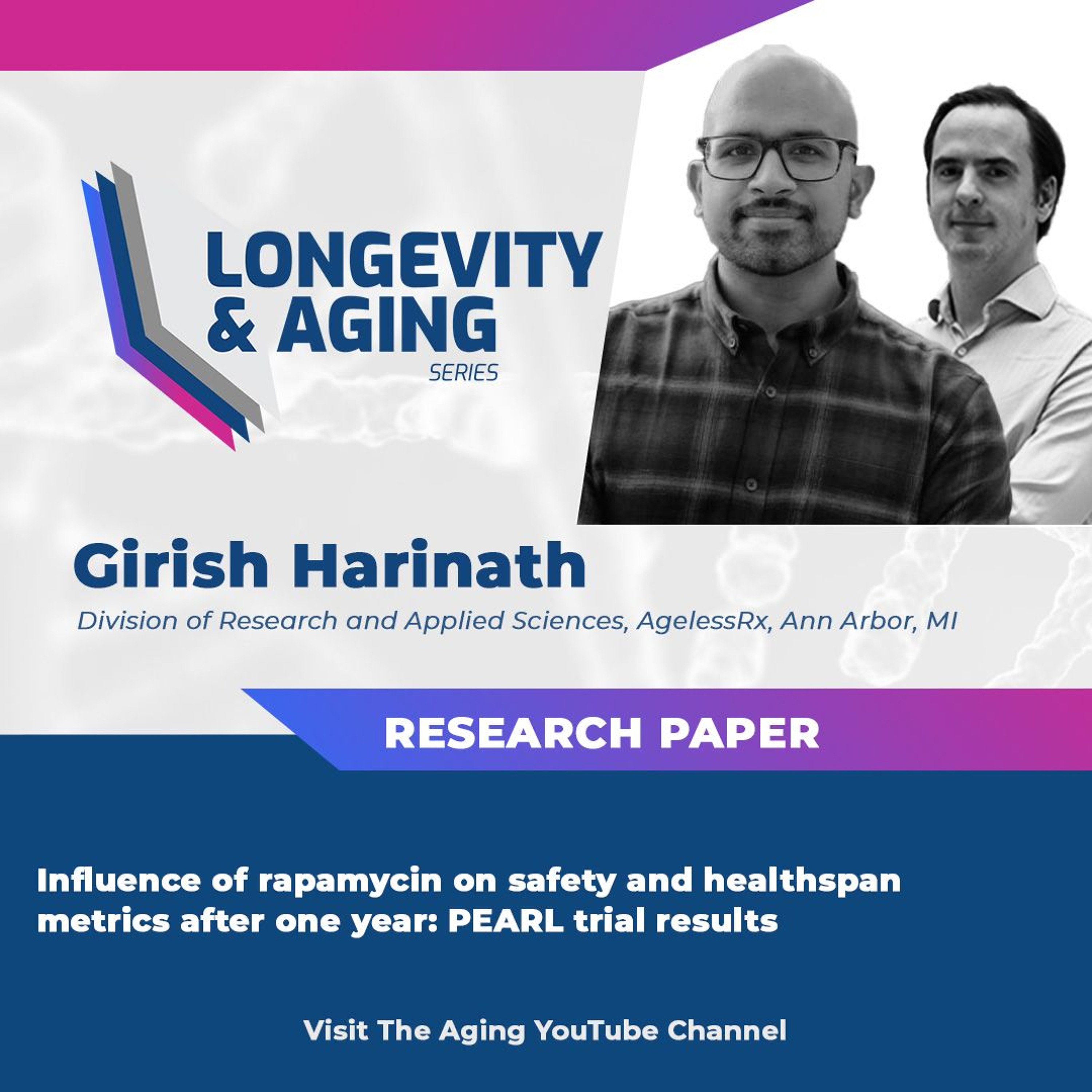 In this episode of the Longevity & Aging Series, Girish Harinath from AgelessRx joins host Dr. Evgeniy Galimov to discuss a research paper he co-authored in Volume 17, Issue 4 of Aging-US, titled “Influence of rapamycin on safety and healthspan metrics after one year: PEARL trial results.”