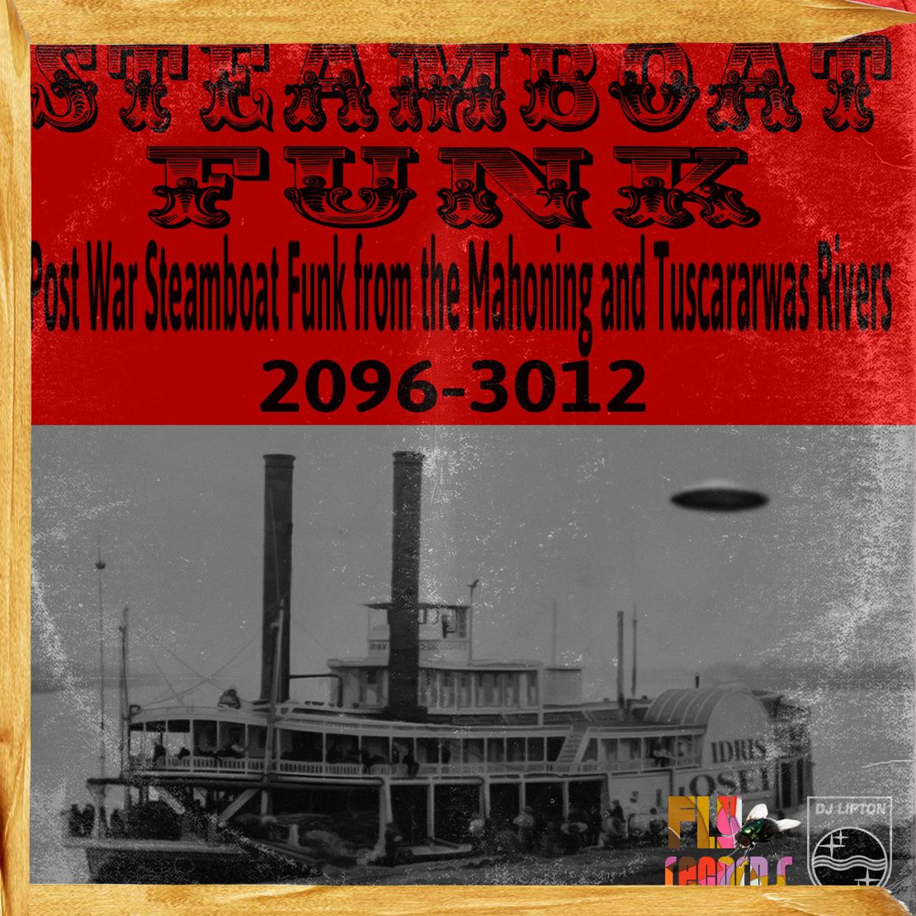 This compilation spans the years of 2096-3012 and contains music from the Latino and Asian deejays that played on the Steamboats that traveled the Tuscarawas and Mahoning rivers in once was Stark County, Ohio. After the second Die Robot Lobster Die war ended in 2091 Neo-Afrikan Muslims took over the Italian owned plantations of that area enslaving anyone of European decent. Musically inept these Neo-Afrikan Muslims hired Arabic steamboat captains. Who by day sold marijuana to the European slaves up and down the rivers. And, also traded for stolen crops and dj equipment for entertainment on these steamboats in the evening. Docking near the plantations the music filled parties went deep into the wee hours of the morning. Plenty of booze, beer, and wine flowed like fountains. The Neo-Afrikan Muslims often found that they woke up late and the European slaves where high on Arabic marijuana just doing their daily chores and routines. The steamboats often had nuclear powered steam engines and incorporated modified early to mid-twentieth century whistles which the Neo-Afrikan Muslims enjoyed in the early evening during tea. The steamboat on the cover of this compilation, The Idris Osei was owned by the wealthiest Arabic captain on the Mahoning river and, only the elite could come to his lavish parties. Most of the music on this compilation was archived by Dj Walter a music archivist and dj on the Idris Osei. We at Fly Records hope you enjoy these tunes of a day long past. Many happy returns.