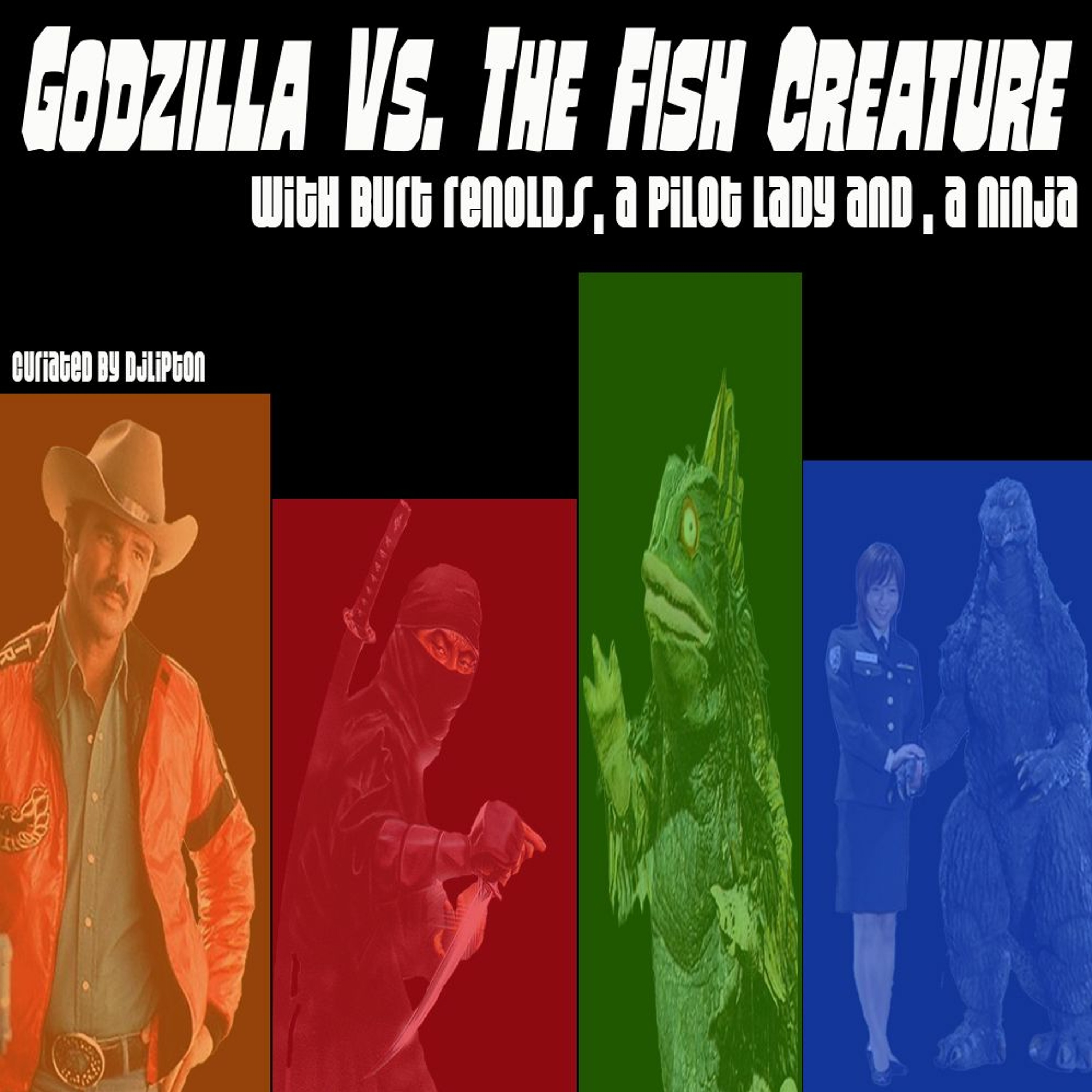 In this point of the evolution of Godzilla he/she can shrink down to the size of a human and even date humans. However, a Fish Creature has come onto the radar of Godzilla’s psychic ability to detect titans. He divorces his wife to fight off the Fish Creature and joins forces with Burt Renolds a spaghetti western cowboy and a 1980s ninja warrior. They get into all kinds of tussles with Godzilla’s wife in tow. (Oh, ninja kung fu fights and all that shit.) But eventually Godzilla gets back with his wife and they live happily ever after. Or do they?!