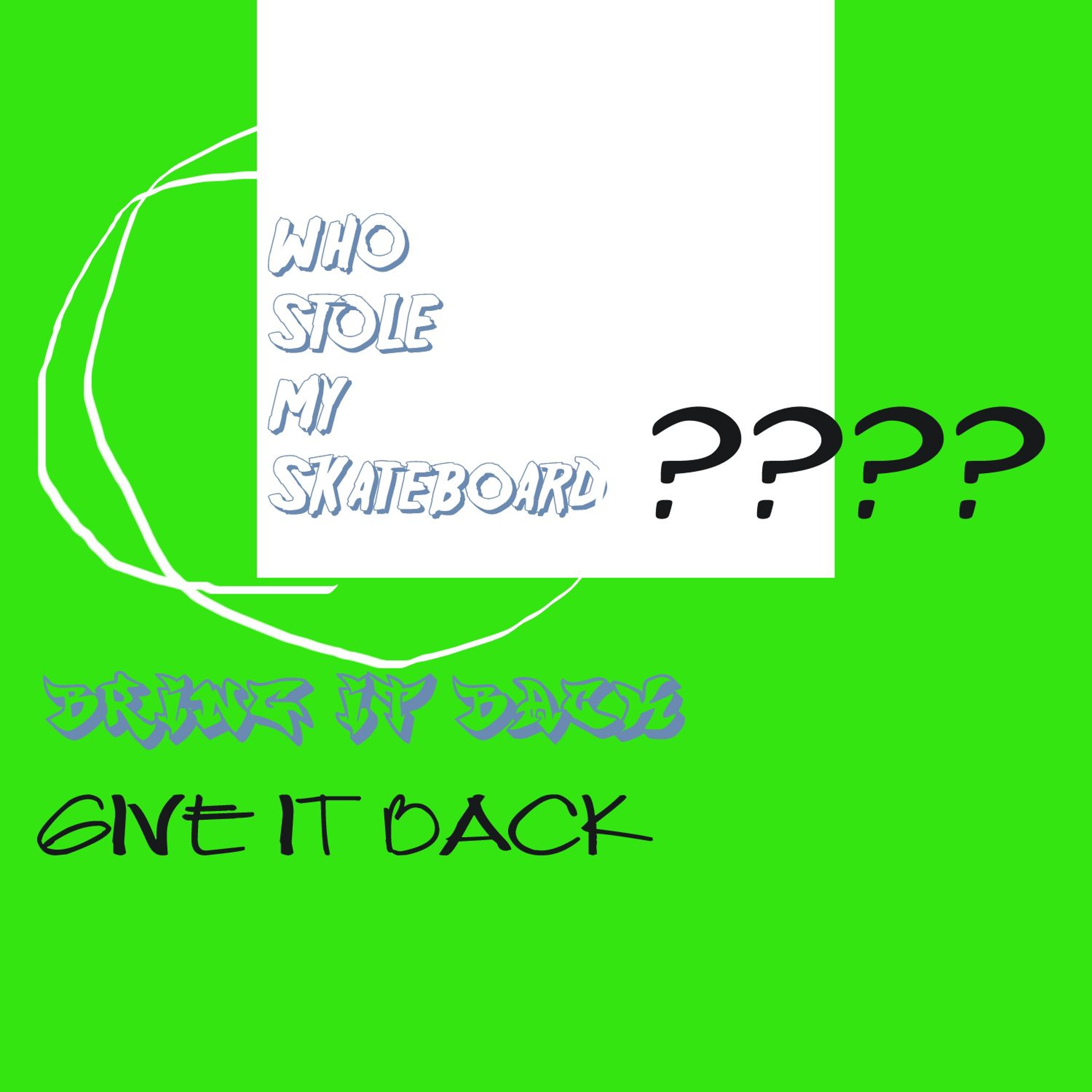 PLEASE BRING IT BACK MY SKATEBOARD THAT IS ME AND NME DOG NEED IT!!!!!!!!!!!!! WE ARE SAD WITH OUT IT!! PLEASE
