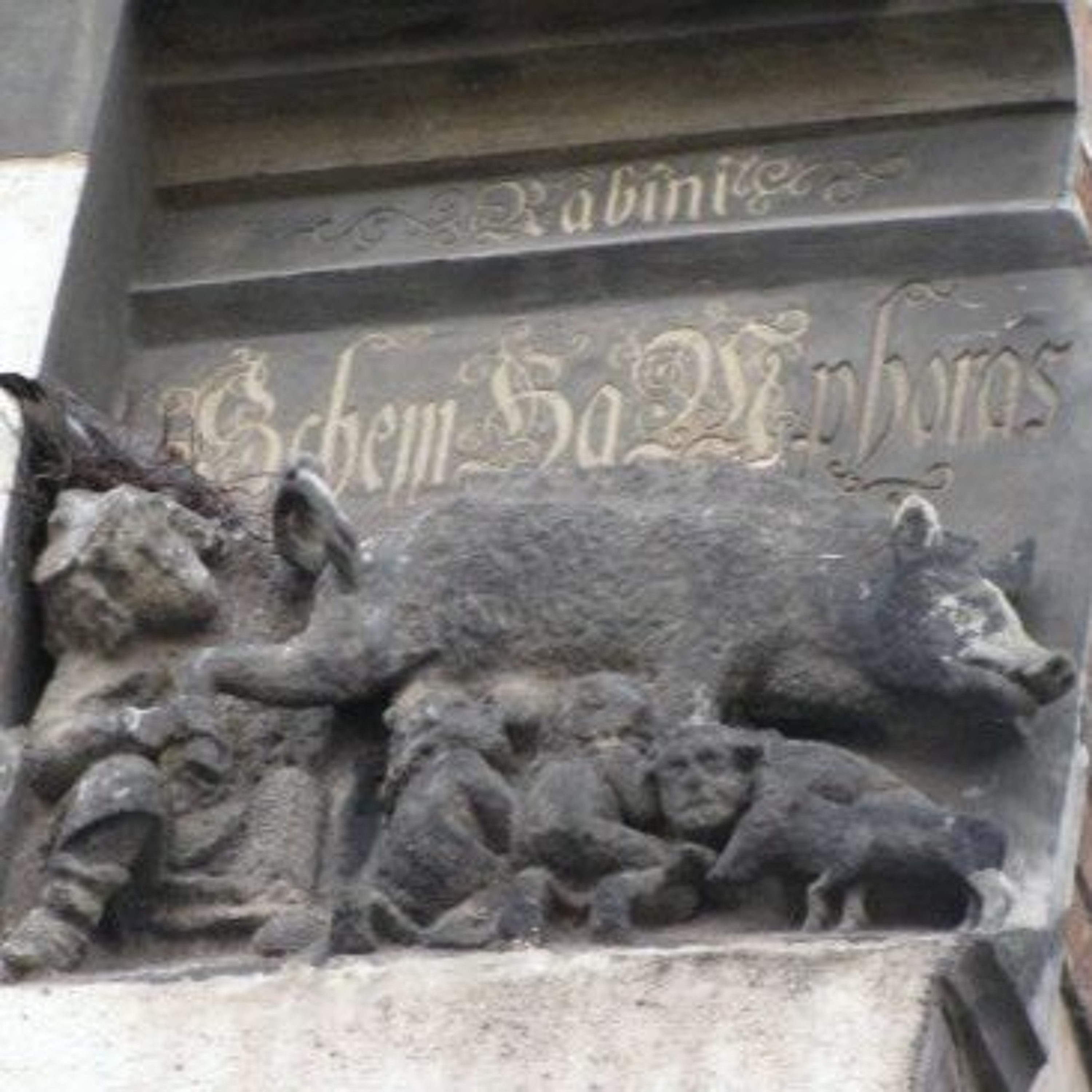 Michael Düllmann, Mitglied einer jüdischen Gemeinde, hatte auf Abnahme des Reliefs geklagt, durch das er sich beleidigt, verhöhnt und erniedrigt sieht. Es zeigt ein Schwein, an dessen Zitzen Menschen saugen, die durch ihre Kleidung als Juden erkennbar sind. Ein Rabbiner schaut dem Schwein in den After.