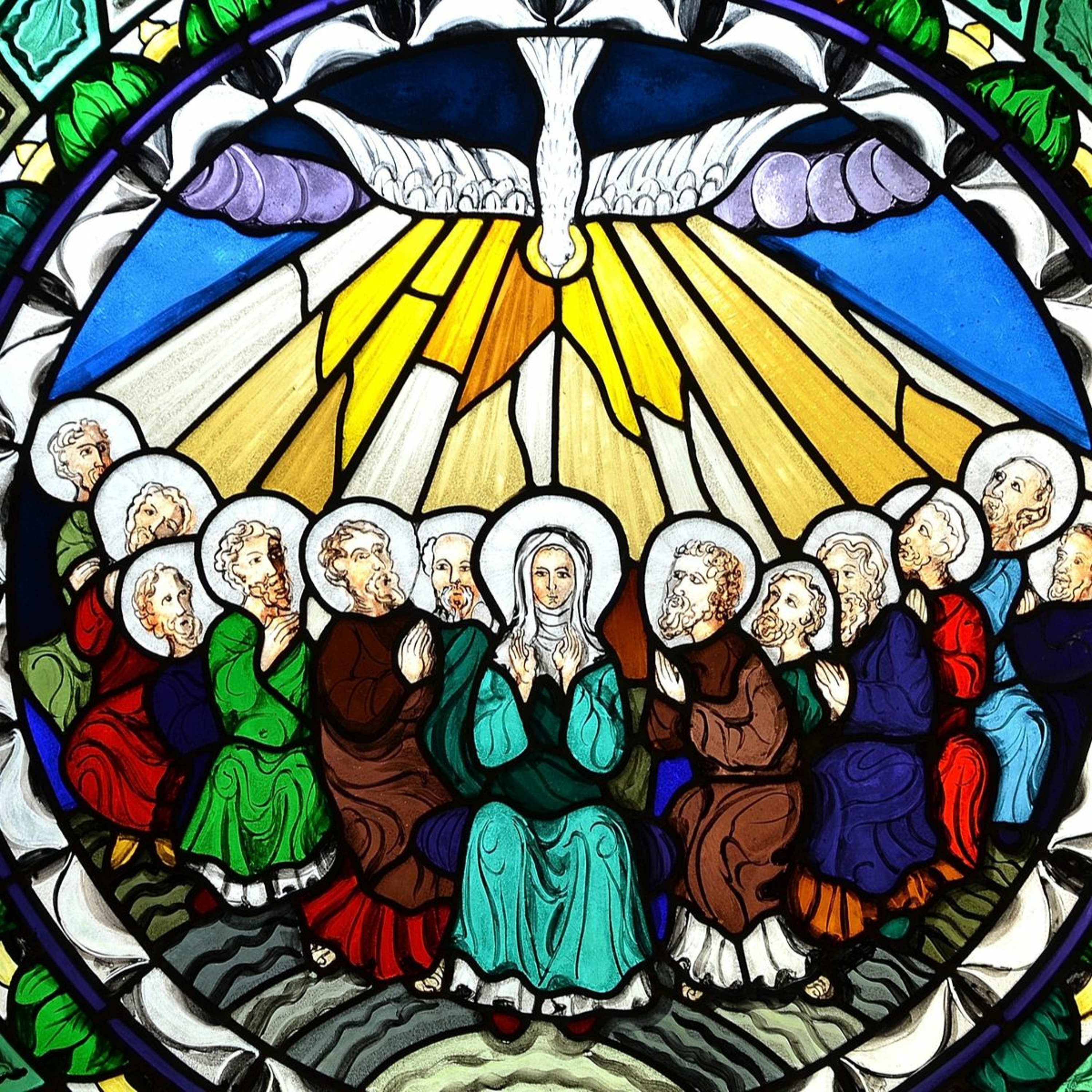 Image: Shutterstock Licensed: Photo: By piosi, photo ID: 417676585 SLUPSK, POLAND - 21 MARCH 2016 stained glass window depicting Pentecost -