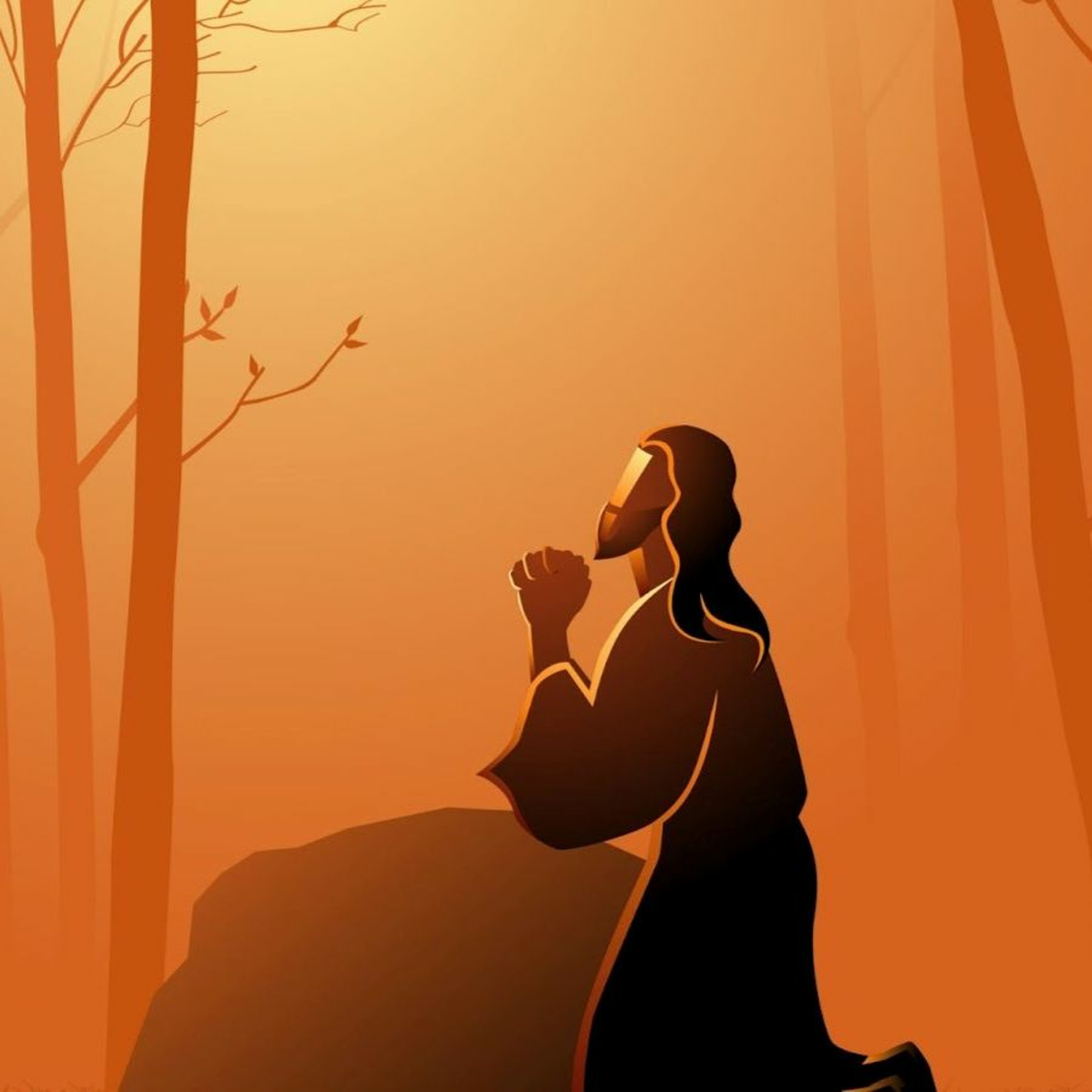 Credit: Shutterstock Licensed. Stock Vector ID: 1100500616 - Biblical vector illustration of Jesus Praying - Vector. Contributor Rudall.