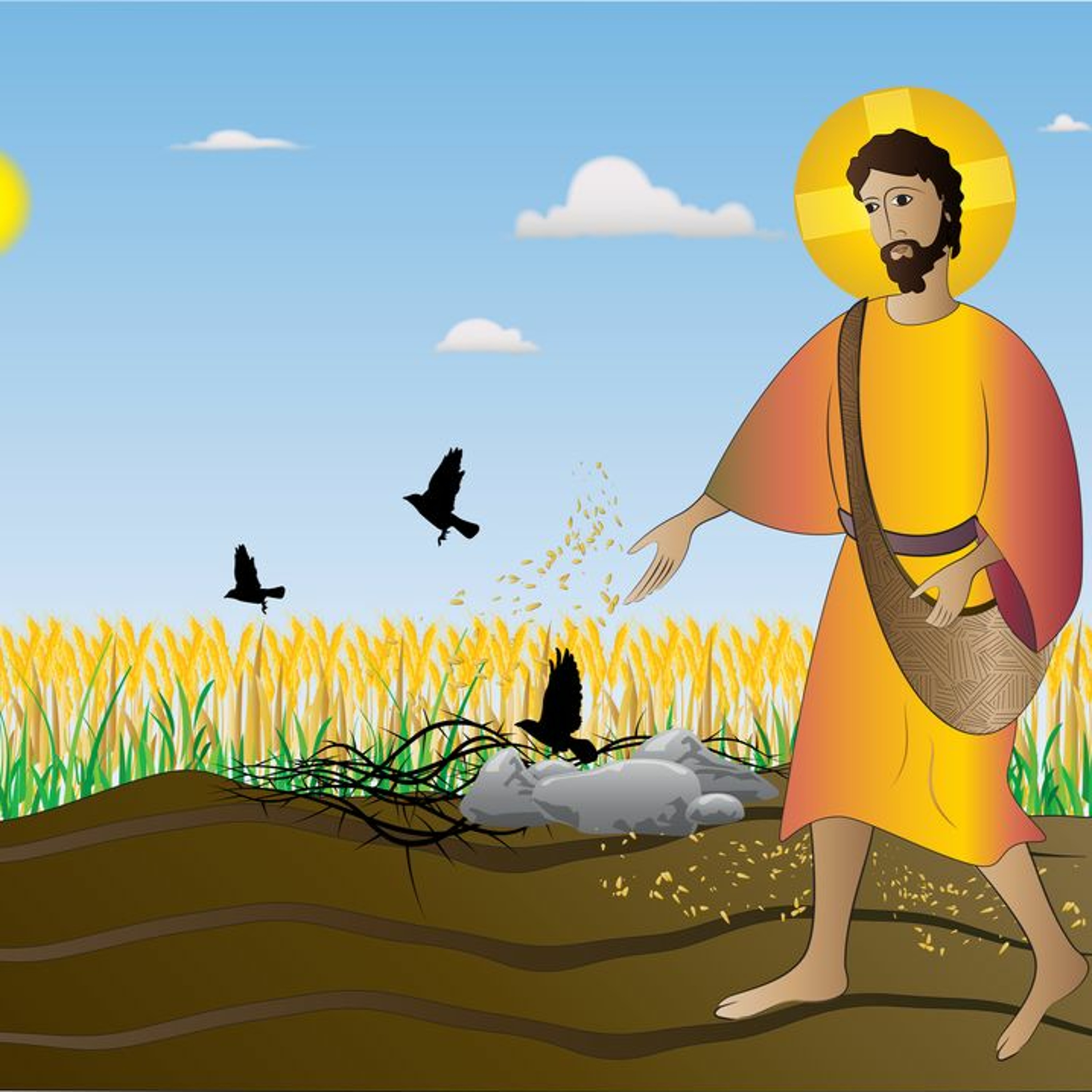 Image Credit: Shutterstock illustration ID: 50338744. Sower seeding the seeds, the Gospel parable from the Bible about the Sower. By Thoom