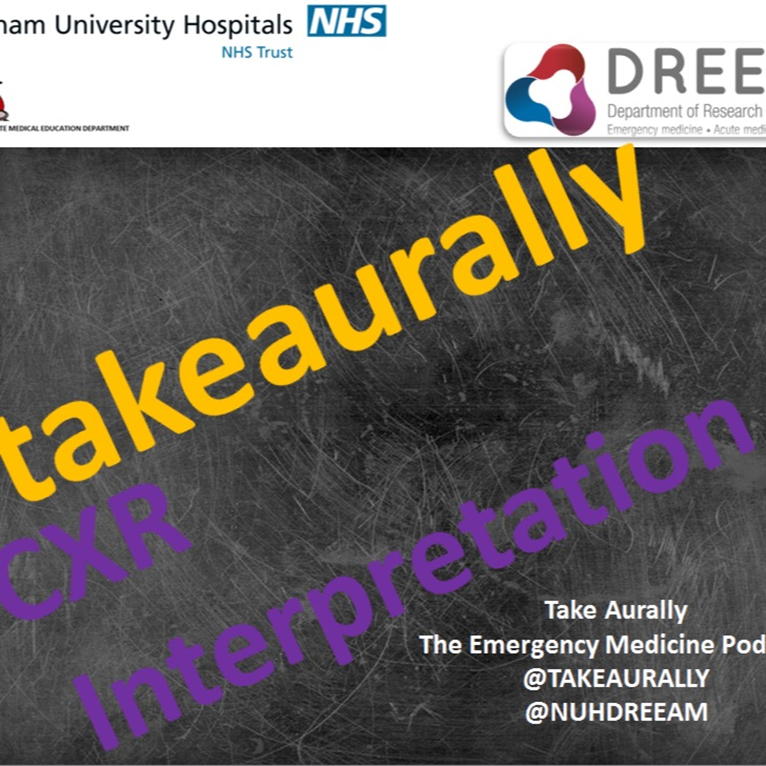 Dr Harry Pick joins the podcast to talk about Chest X-Ray interpretation. A blog with more information can be found at www.takeaurally.com. There you'll also find our other podcasts, more information, videos, Take Visually and our #FYEO and #OHMNHS blogs. You can also find Take Aurally on Facebook and Twitter. NUH DREEAM can be found on Facebook and Twitter.