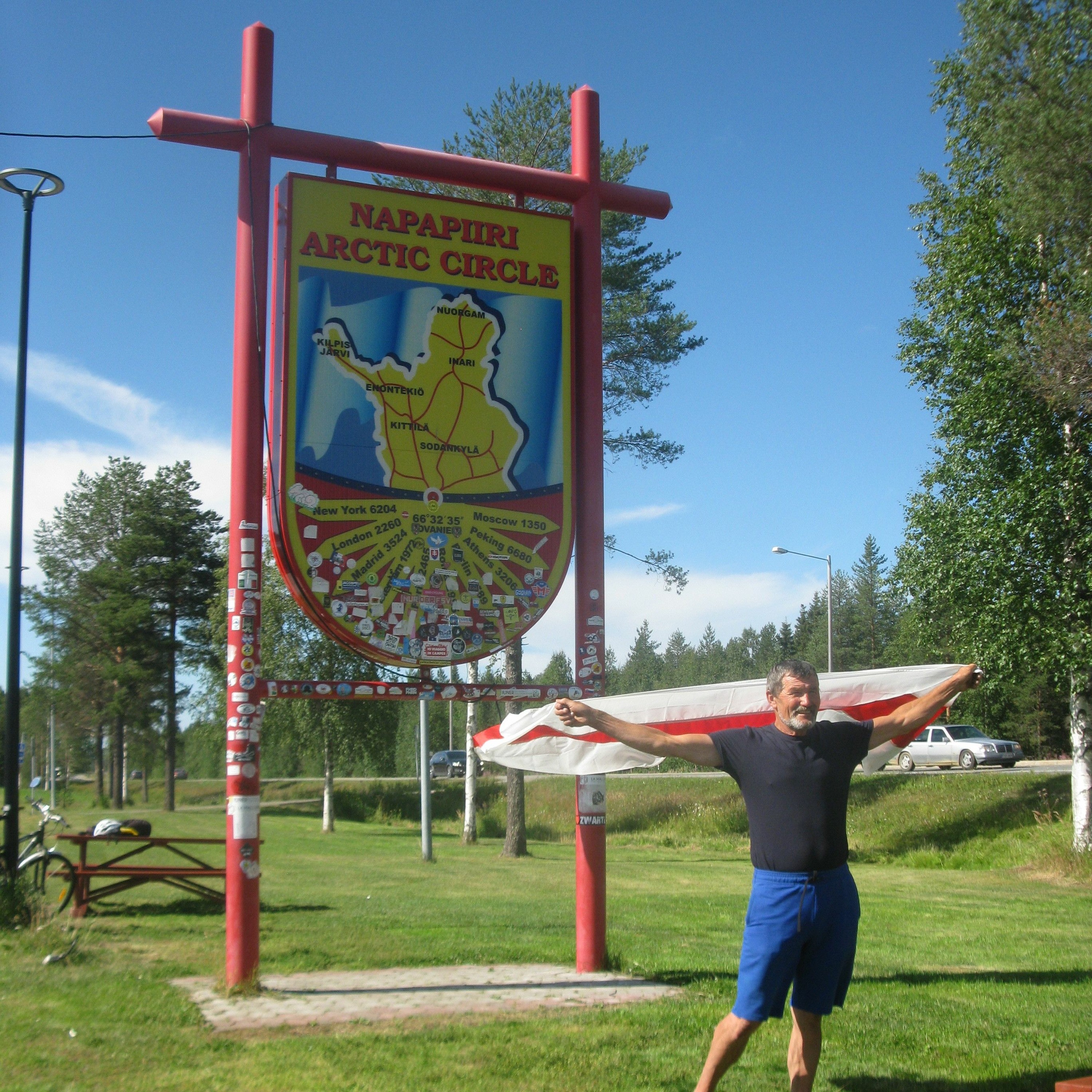 Уладзімер Матусевіч, фэрмэр зь вёскі Мацкі на Меншчыне, узьняў бел-чырвона-белы сьцяг на паўночным палярным крузе. Яму 65 гадоў, пасьля школы скончыў “мараходку” у Таліне, абышоў на акіянічным рэфрыжэратары ўвесь сьвет — Амэрыку, Аўстралію, Сынгапур, партовыя гарады Эўропы. У канцы 1980-х вярнуўся ў родную вёску, збудаваў вялікі дом, арганізаваў фэрмэрскую гаспадарку і ад таго часу займаецца вырошчваньнем розных гатункаў гародніны.