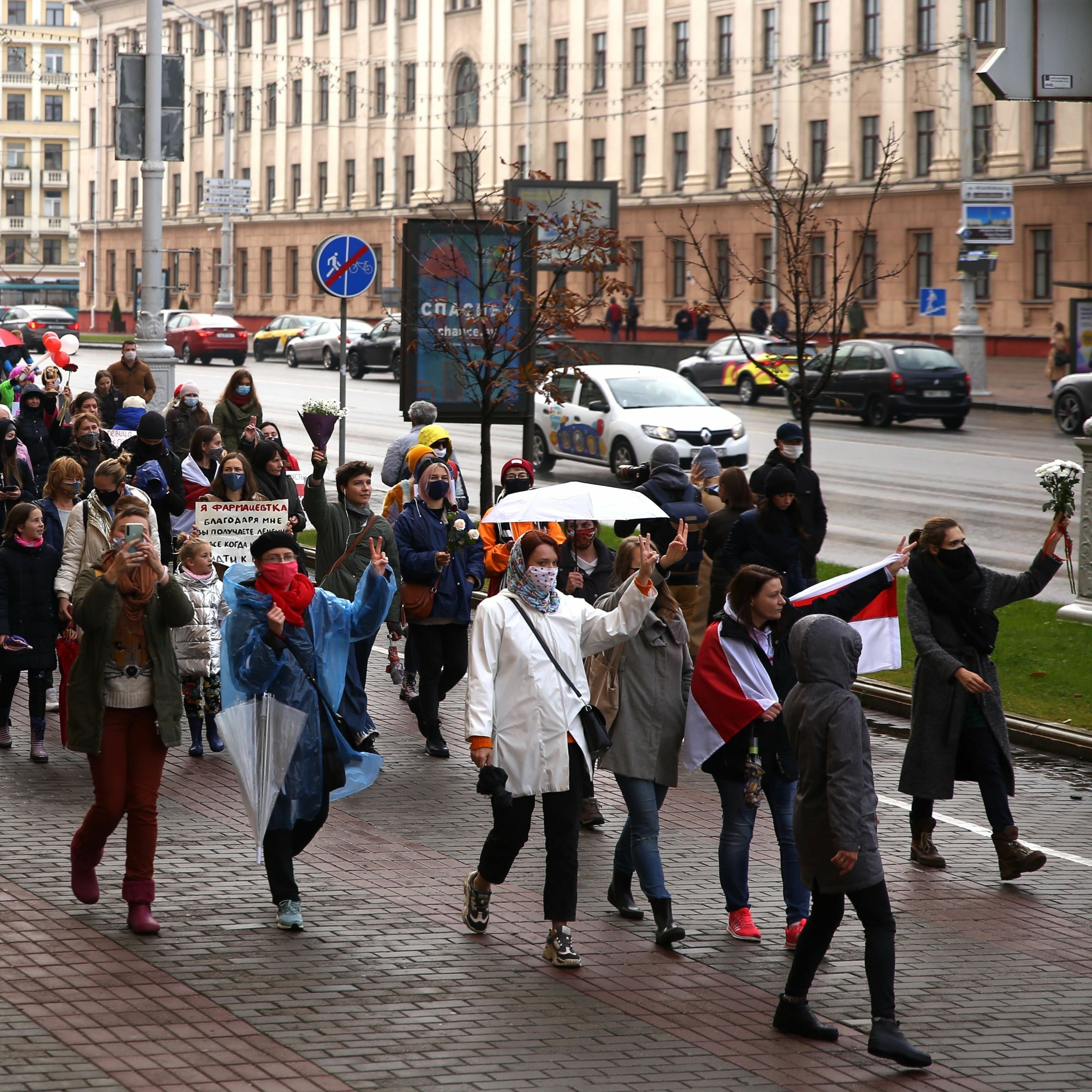 *на фота: Традыцыйны суботні «Жаночы марш» супраць улады Аляксандра Лукашэнкі прайшоў 24 кастрычніка ў Менску.