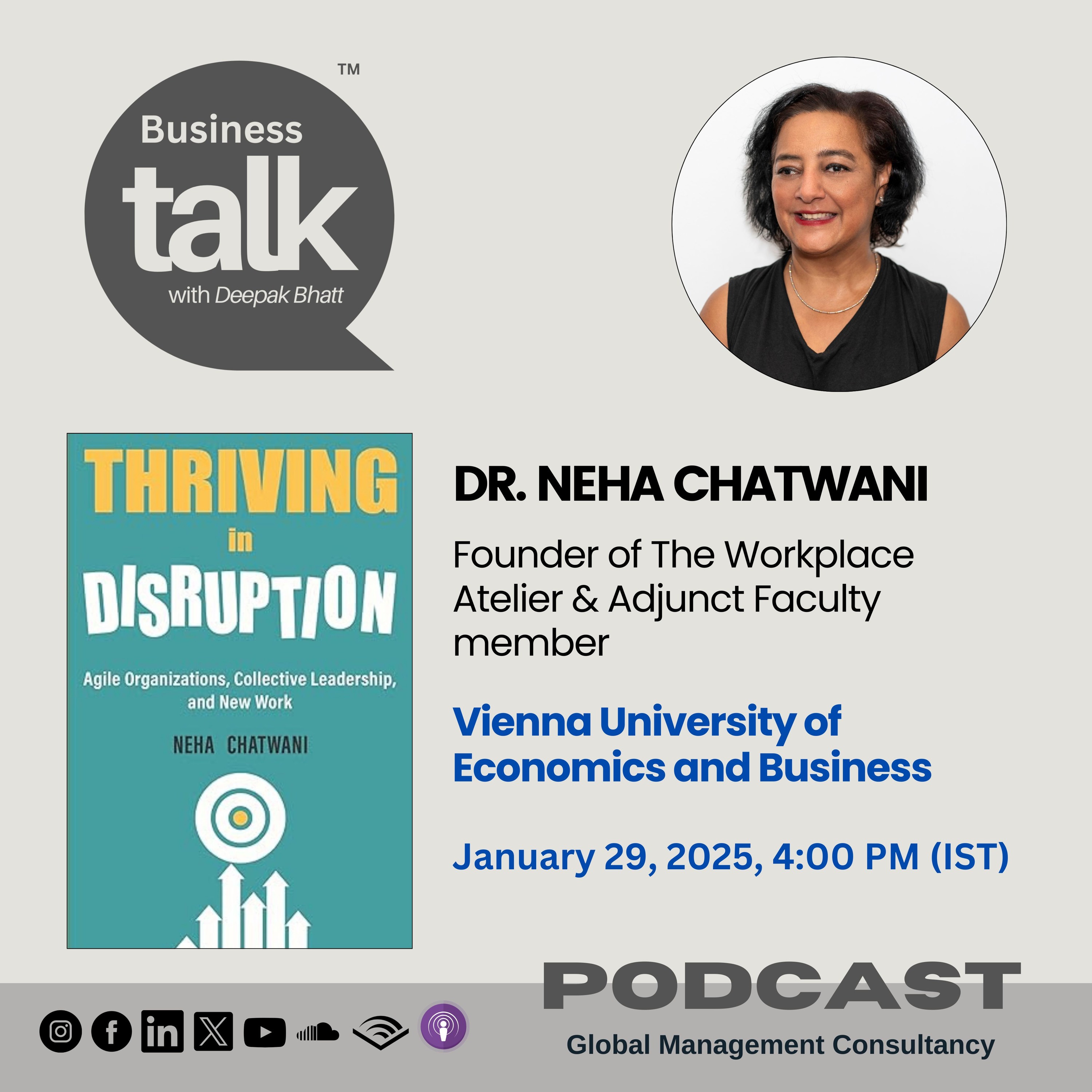 In this episode, Dr. Neha will be sharing valuable insights from her second and latest book, “Thriving in Disruption: Agile Organizations, Collective Leadership and New Work”, providing a deeper understanding of how organizations can thrive in today’s fast-evolving landscape.