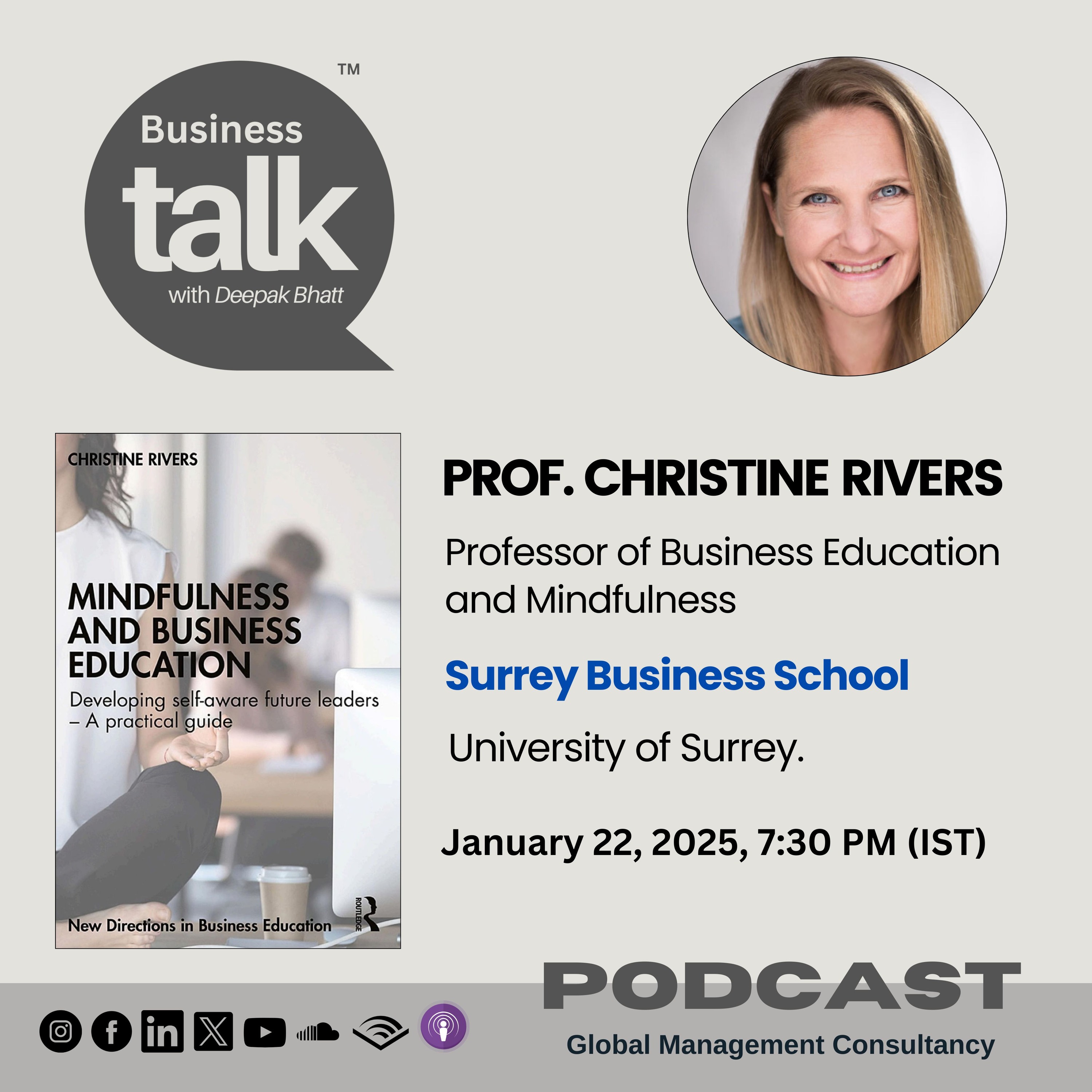 In this episode, Prof. Christine Rivers shares profound insights from her transformative book, “Mindfulness and Business Education: Developing Self-aware Future Leaders: A Practical Guide.”