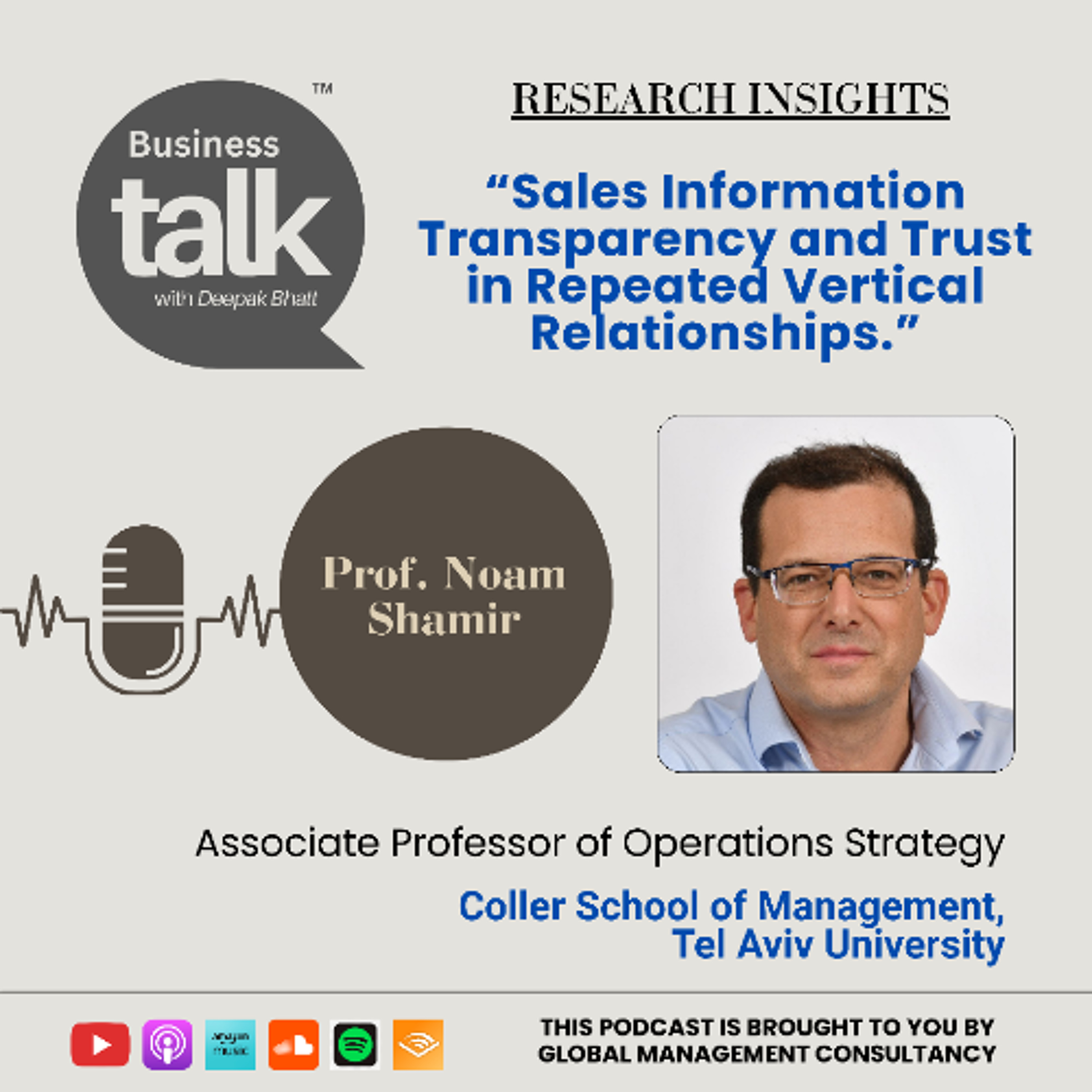 B. Dr. Noam Shamir generously shared profound insights from his research, “Sales Information Transparency and Trust in Repeated Vertical Relationships,” during his appearance on the Business Talk podcast channel. The uploaded video contains copyrighted material; therefore, any modifications to graphics, music, or the presence of the author or host are strictly prohibited.